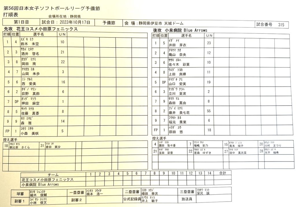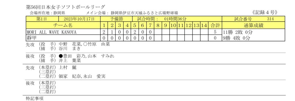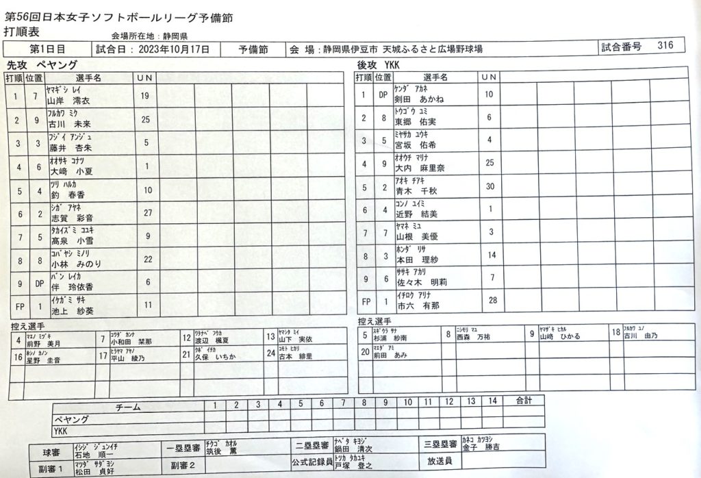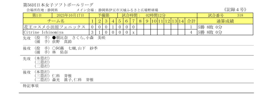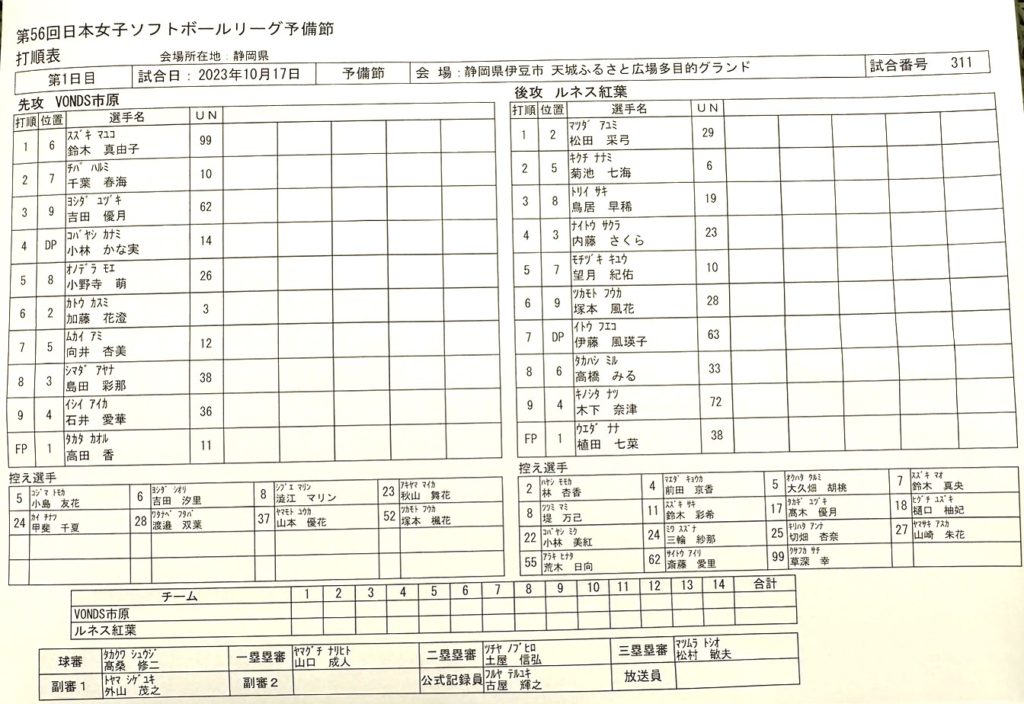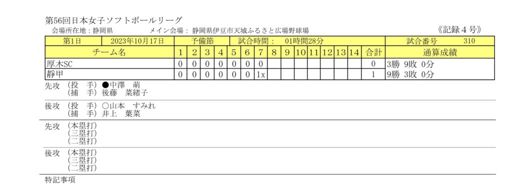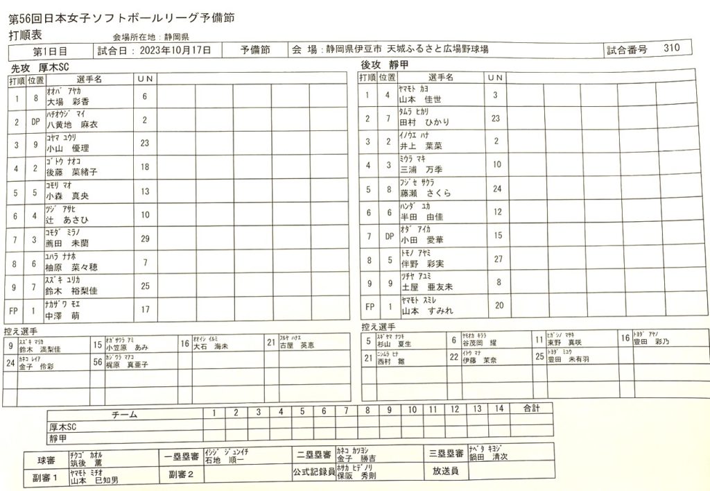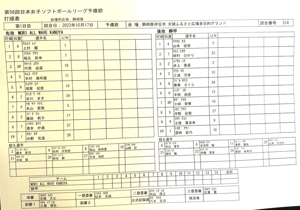 JSリーグ(日本女子ソフトボールリーグ)の予備節が10/17(火)に静岡県伊豆市の天城ふるさと広場で開催されました。