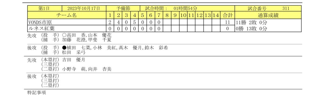 第一試合 VONDS市原 11ー0 ルネス紅葉