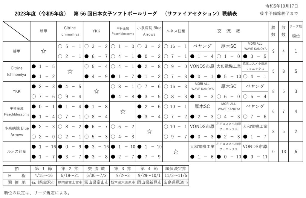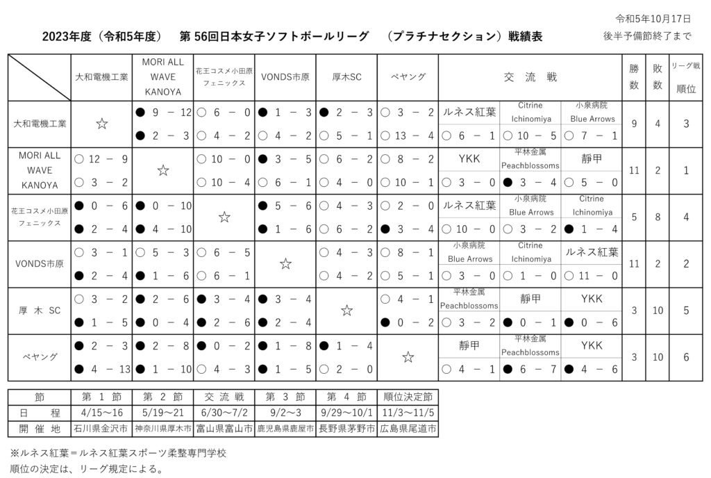 順位決定節の組合せはこちら(日本女子ソフトボールリーグ)