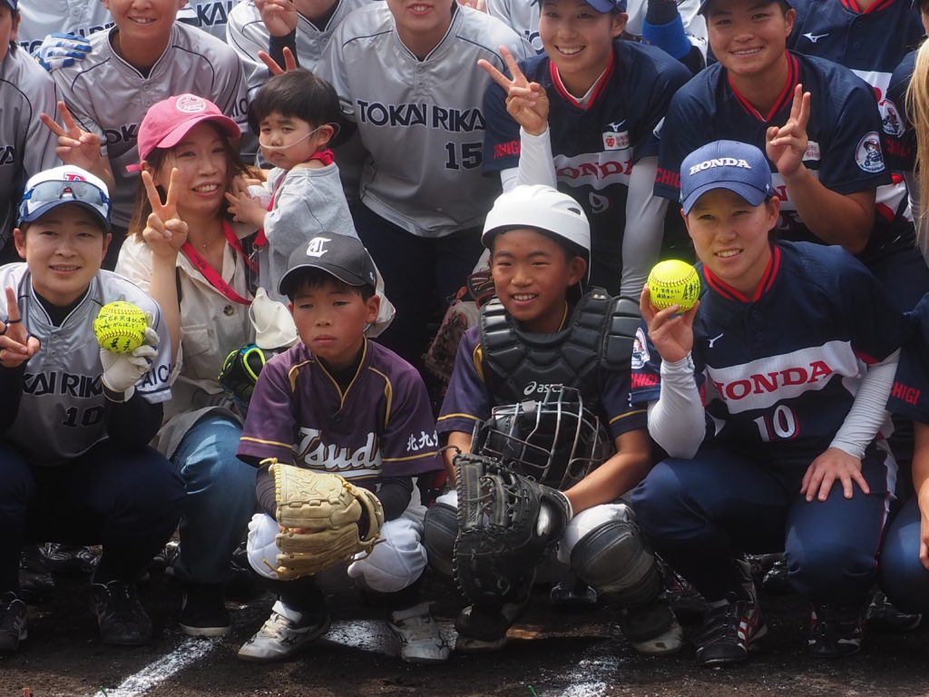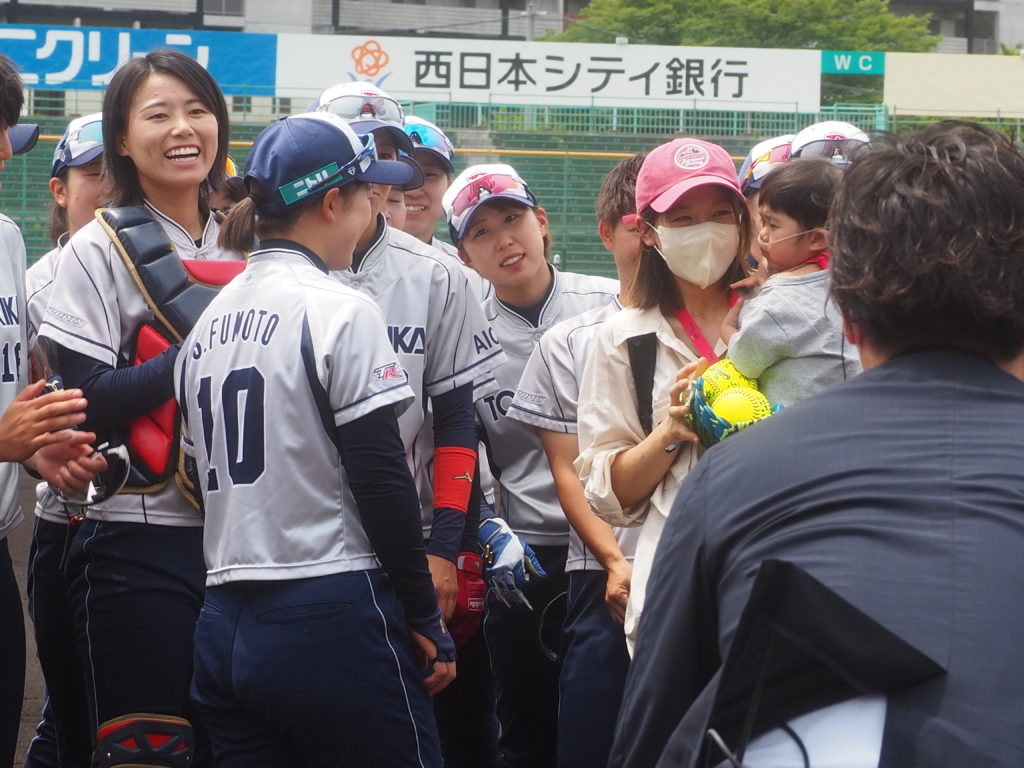 また、日立の那須キャプテンは、笑偉士くんと対面した日の夜のミーティングで言葉を詰まらせながらチームメイトに「私たちが今、ソフトボールができることはあたりまえではない。自分達がプレーすることで元気を与えることができる。私達にはそれができるから。」と伝えられたそうです。その言葉がみんなの心に響き翌日の勝利に繋がったとのことです。(栗田コーチ談)
