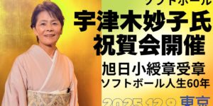 また、第二部では、今年7月にイタリアで開催された「WBSC女子ソフトボールワールドカップ」の金メダル獲得報告会があります。宇津木麗華ヘッドコーチやW杯大会MVPを獲得した上野由岐子選手等日本代表選手が参加しました。