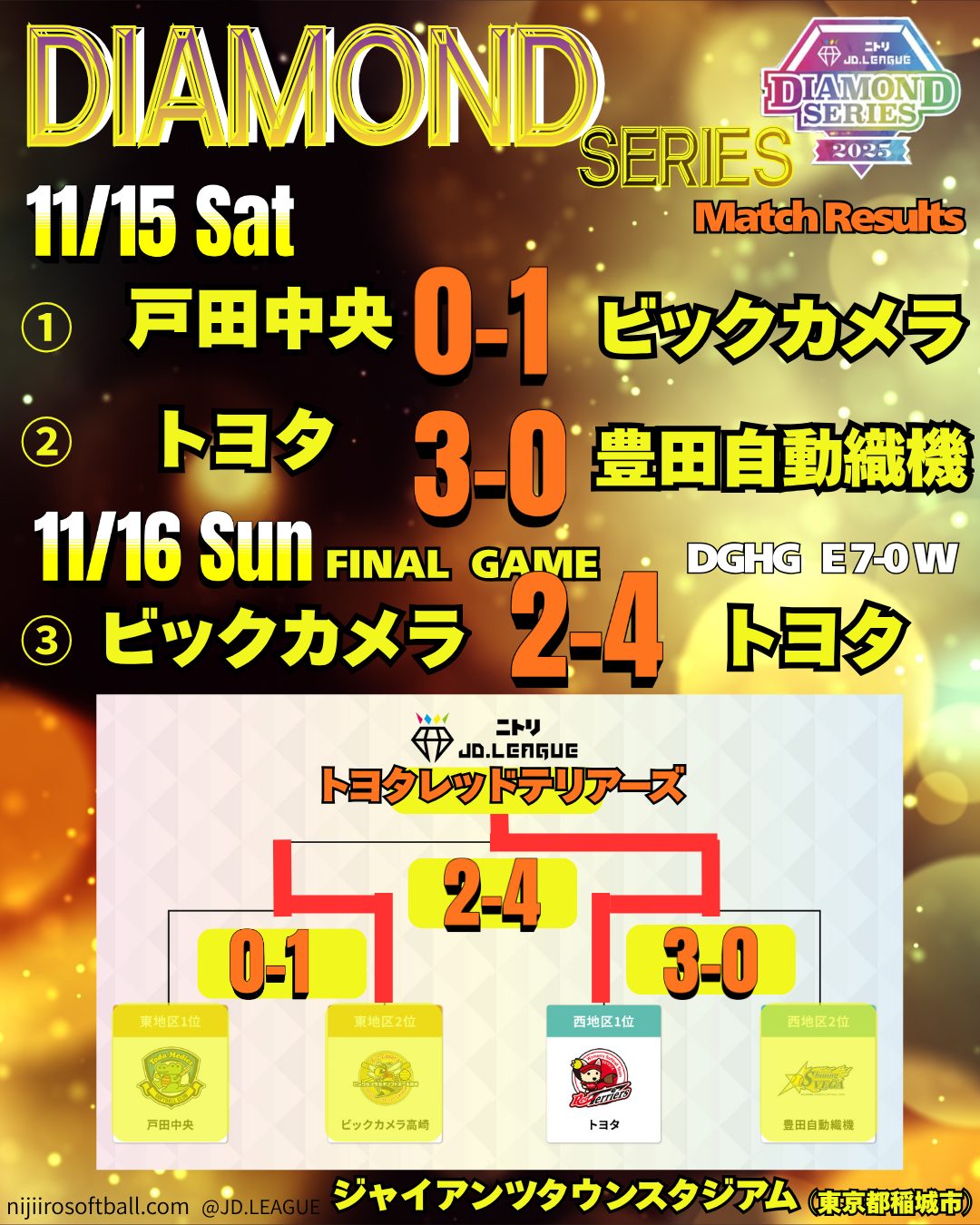| 11/15(土)〜11/16(日) | JDリーグダイヤモンド | 結果 | 東京都稲城市 | JDリーグ |