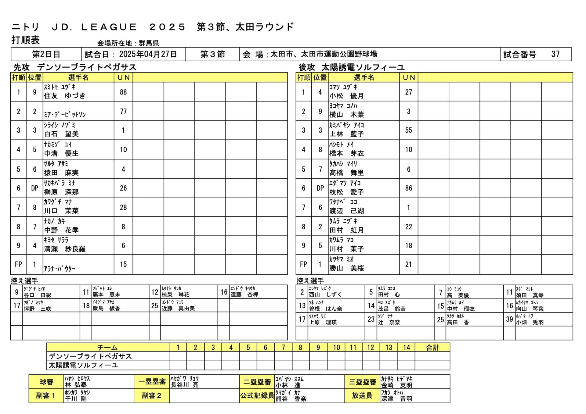 デンソー5-2太陽誘電 JDL第3節太田ラウンド 2025.4.27 女子ソフトボール試合結果