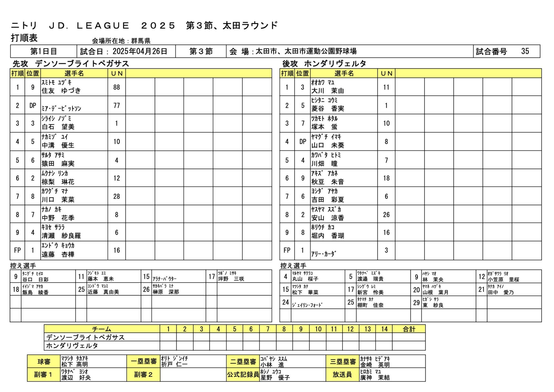 | デンソー | 遠藤 杏樺、飯島 綾香、●アラナ・バウター - 椋梨 琳花 |