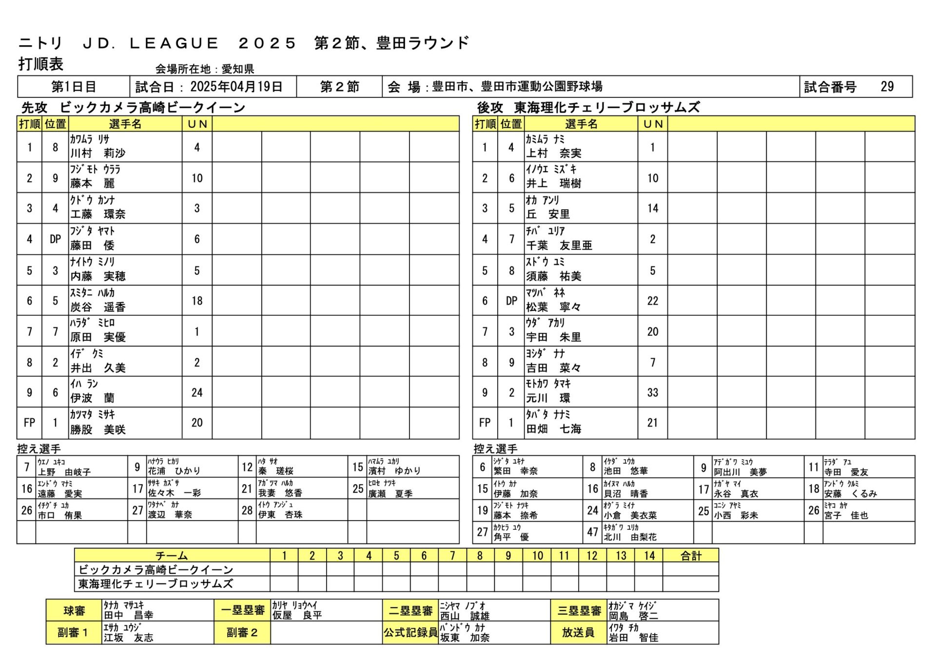 ビックカメラ高崎8-0東海理化 JDL第2節豊田ラウンド 2025.4.19 女子ソフトボール試合結果