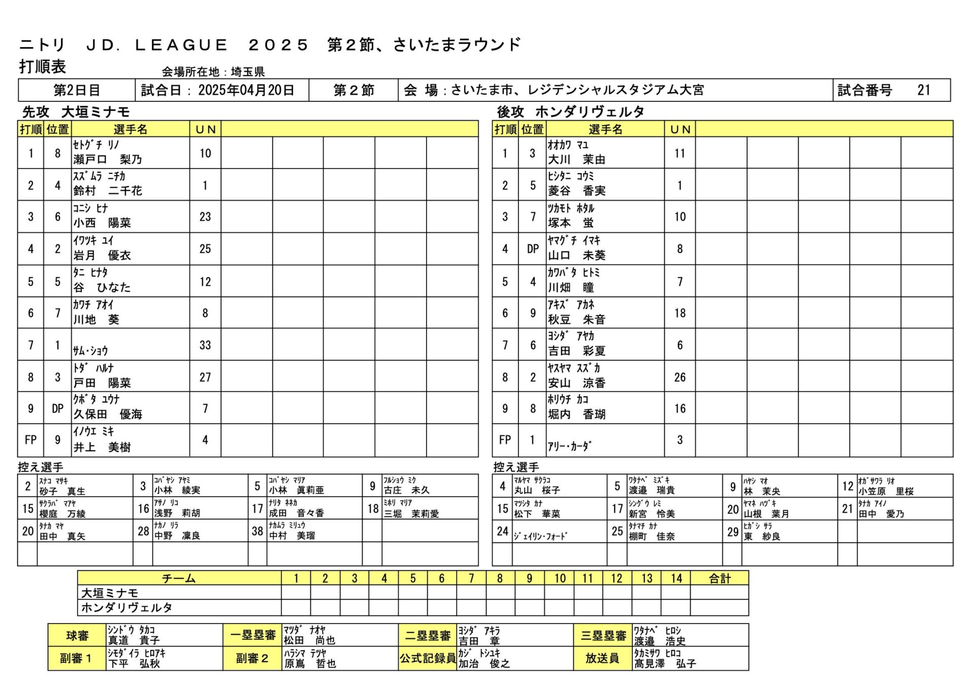 ホンダ9-3大垣ミナモ JDL第2節大宮ラウンド 2025.4.20 女子ソフトボール試合結果