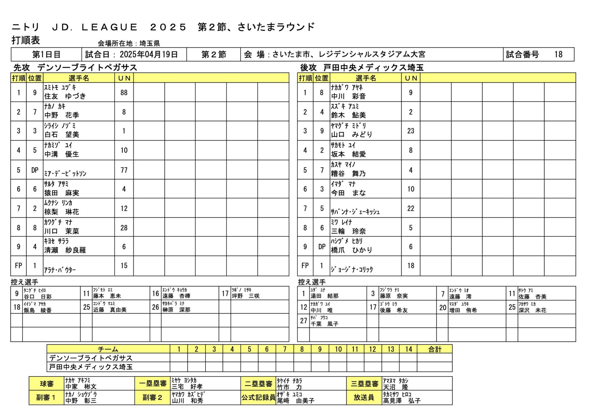 戸田中央4-1デンソー JDL第2節大宮ラウンド 2025.4.19 女子ソフトボール試合結果