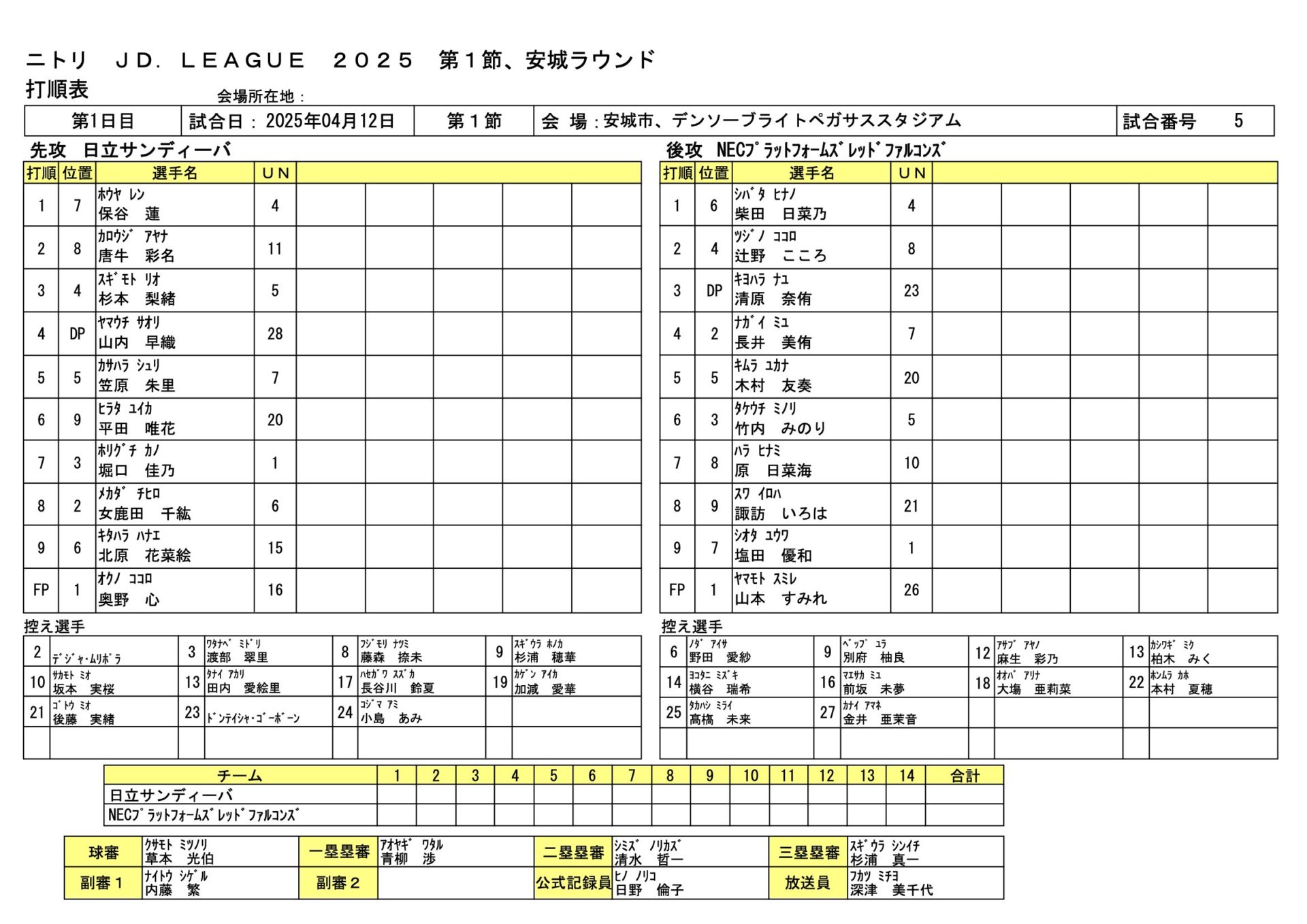 日立8-0NECプラットフォームズ JDL第1節安城ラウンド 2025.4.12 女子ソフトボール試合結果
