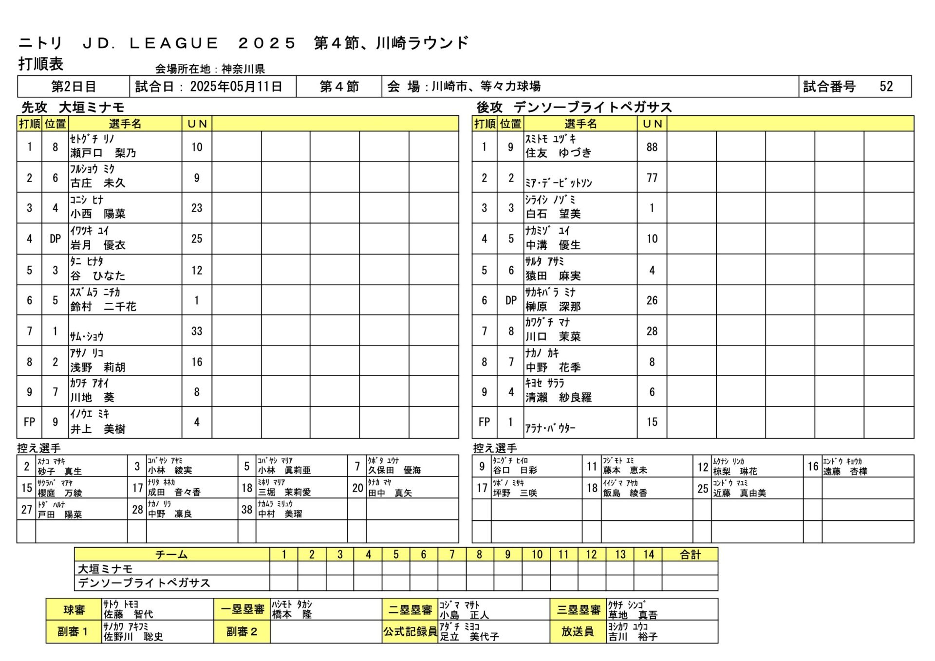 デンソー4-2大垣ミナモ JDL第4節川崎ラウンド 2025.5.11 女子ソフトボール試合結果