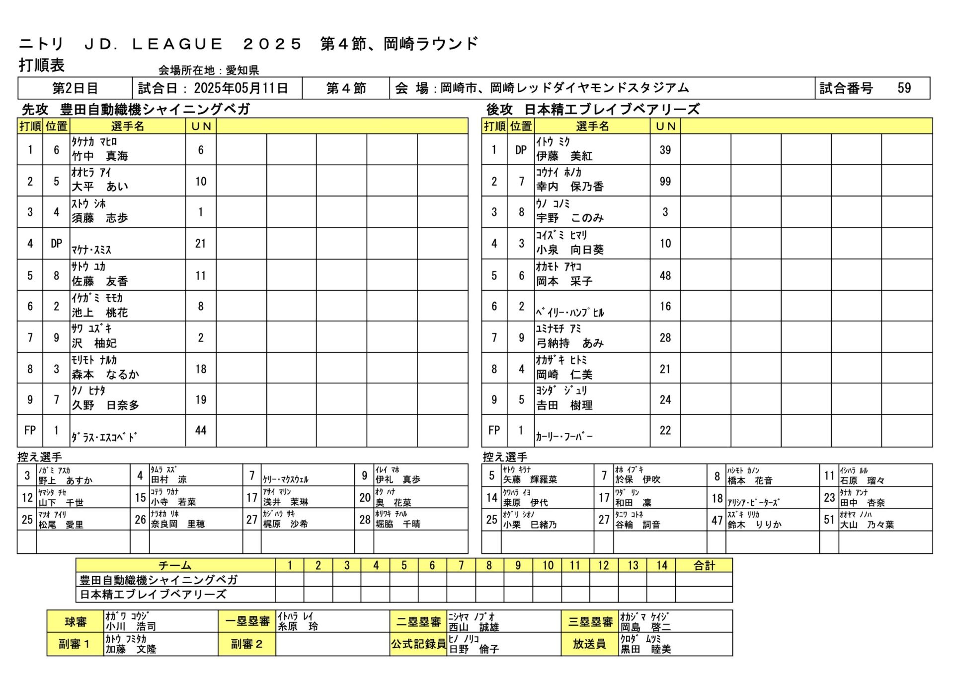 豊田自動織機9-4日本精工 JDL第4節岡崎ラウンド 2025.5.11 女子ソフトボール試合結果