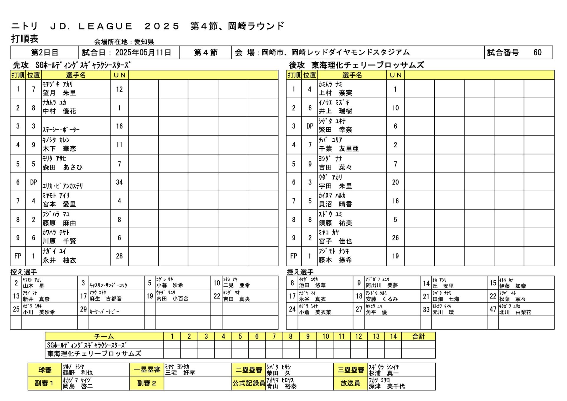 SGH8-1東海理化 JDL第4節岡崎ラウンド 2025.5.11 女子ソフトボール試合結果