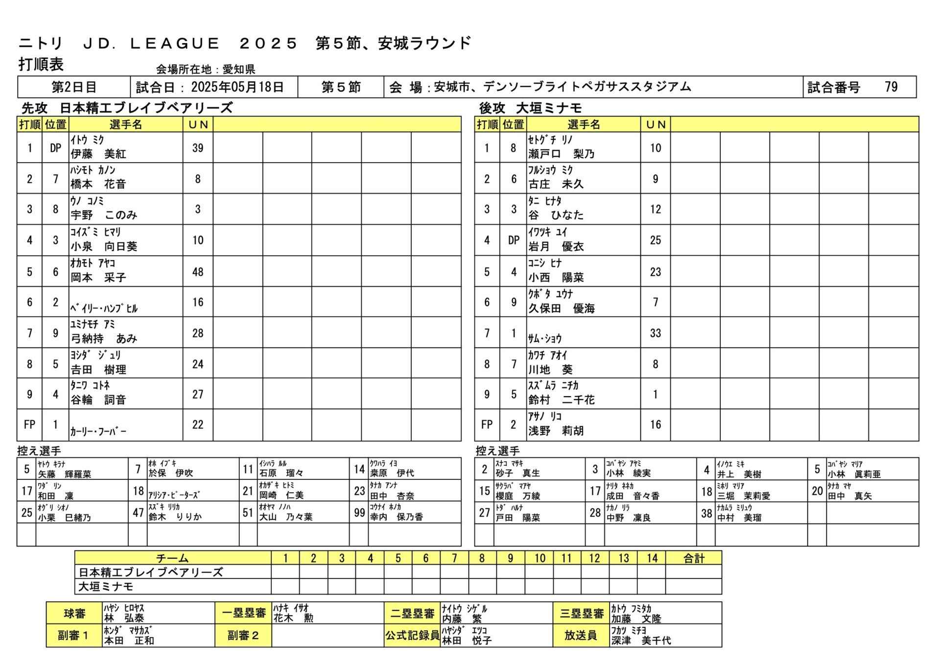 | 日本精工 | ○カーリー・フーバー、鈴木 りりか、小栗 巳緒乃 - ベイリー・ハンプヒル、小泉 向日葵、桒原 伊代 |