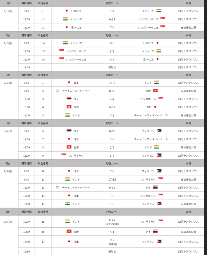 参加チーム:日本、チャイニーズタイペイ、香港、インド、フィリピン、シンガポール、タイ