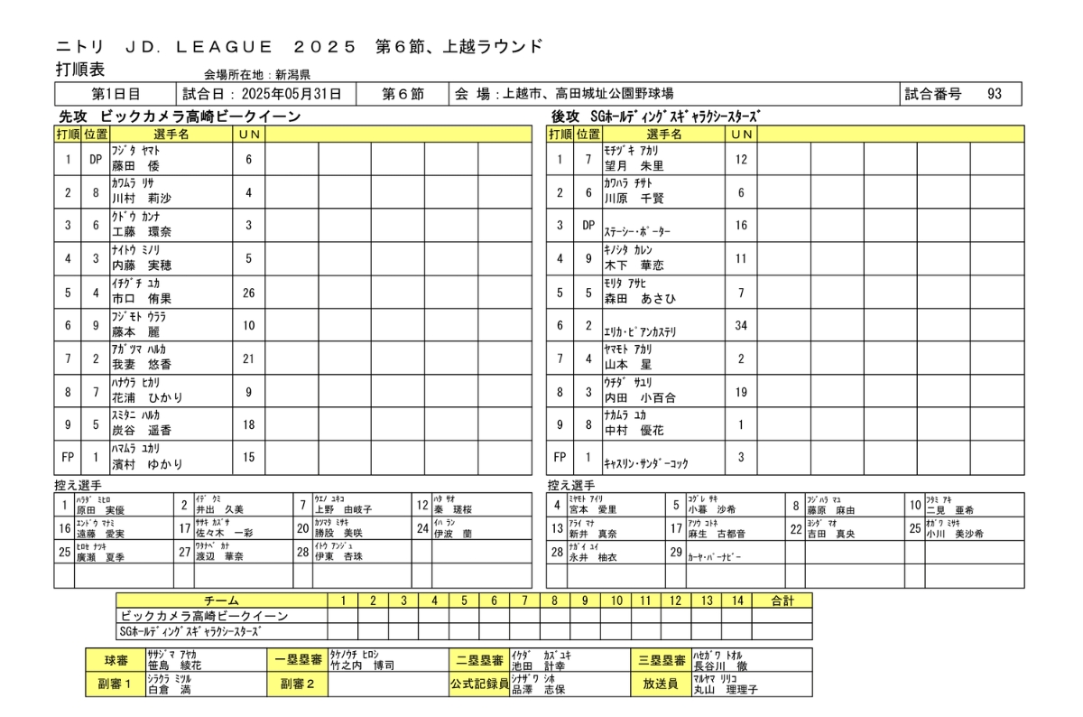 SGホールディングス3-2ビックカメラ高崎 JDL第6節上越ラウンド 2025.5.24 女子ソフトボール試合結果