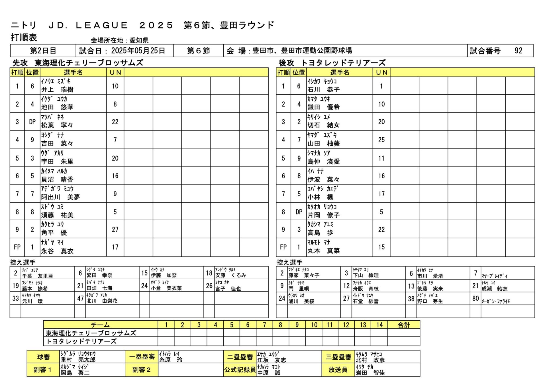 | トヨタ | 丸本 真菜、成瀨 結衣、○メーガン・ファライモ - 切石 結女 |