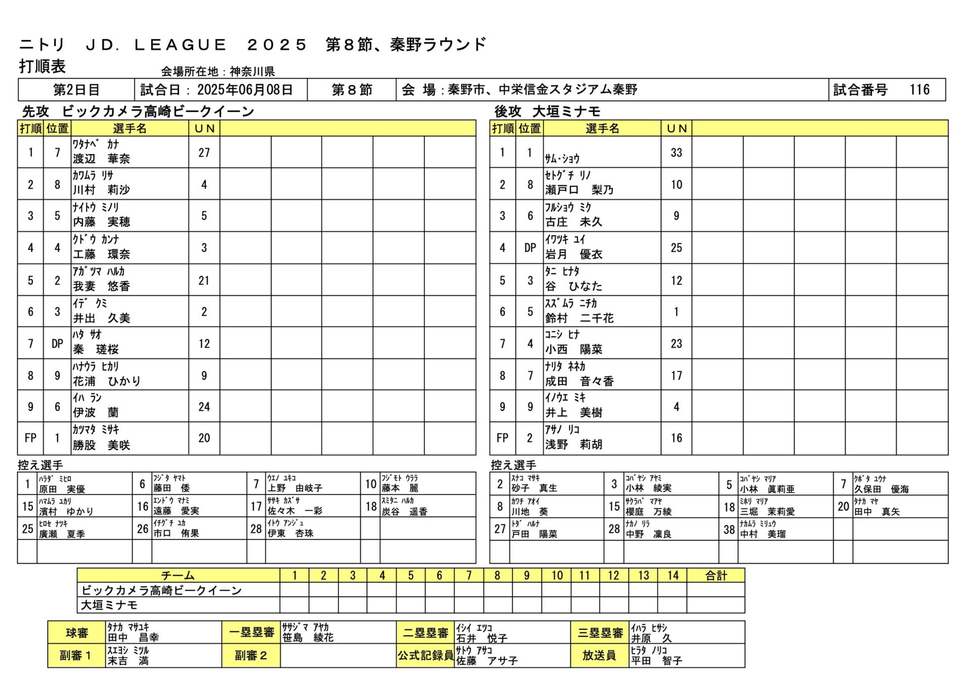 | ビックカメラ | ○勝股 美咲、伊東 杏珠 - 我妻 悠香 |