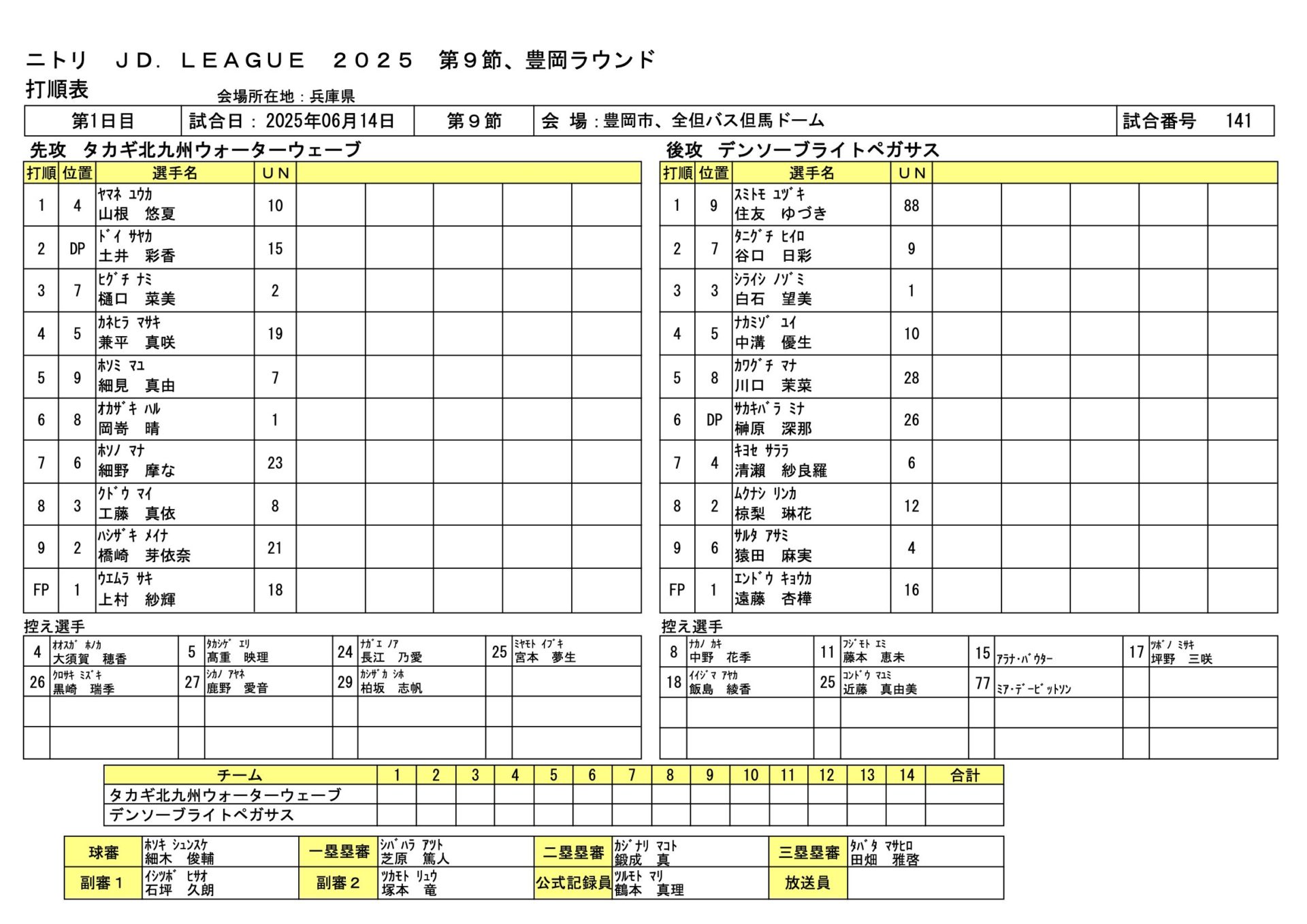 デンソー3-2タカギ北九州 JDL第9節豊岡ラウンド 2025.6.14 女子ソフトボール試合結果