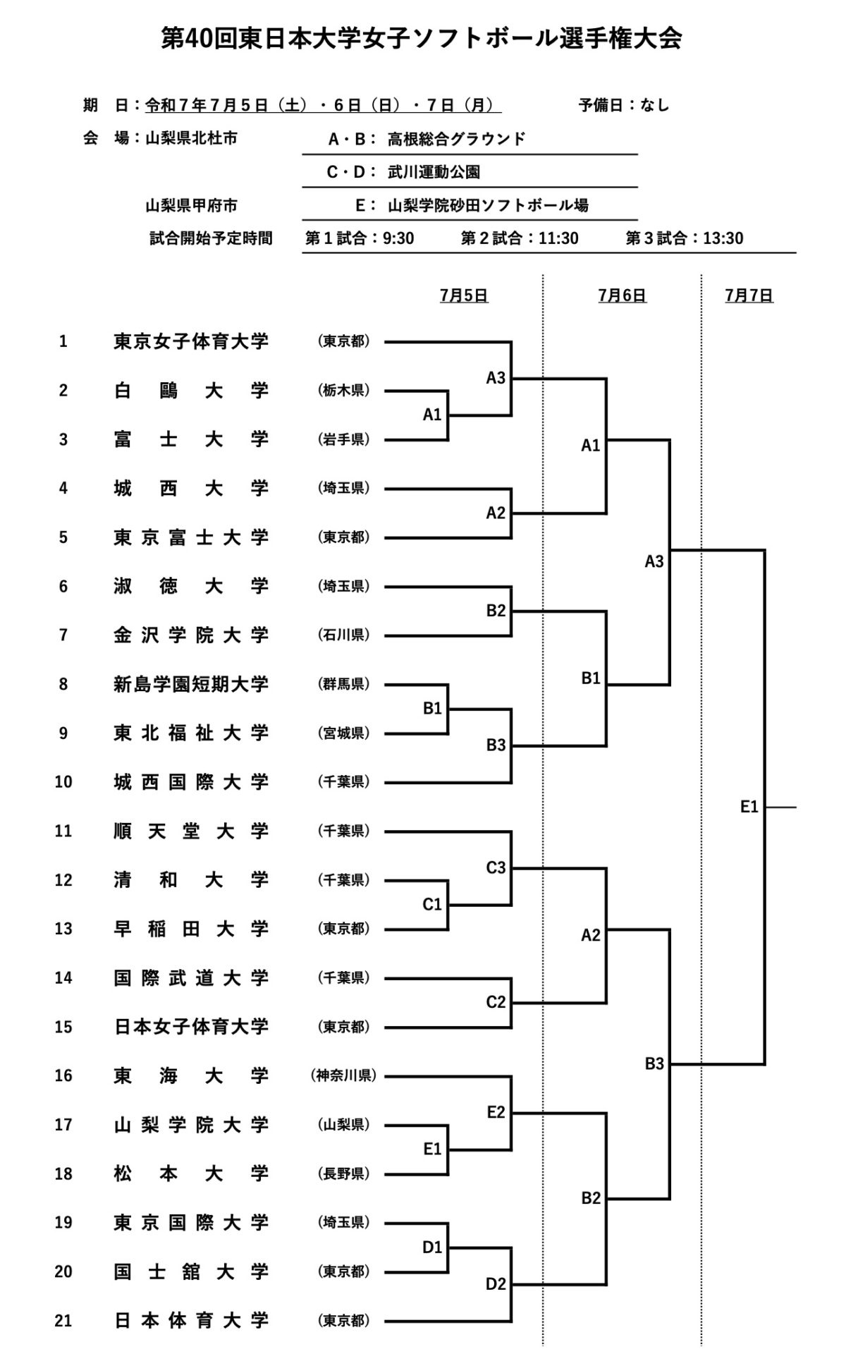2025年7月5日から7日まで、山梨県北杜市および甲府市にて「第40回東日本大学女子ソフトボール選手権大会」が開催されます。