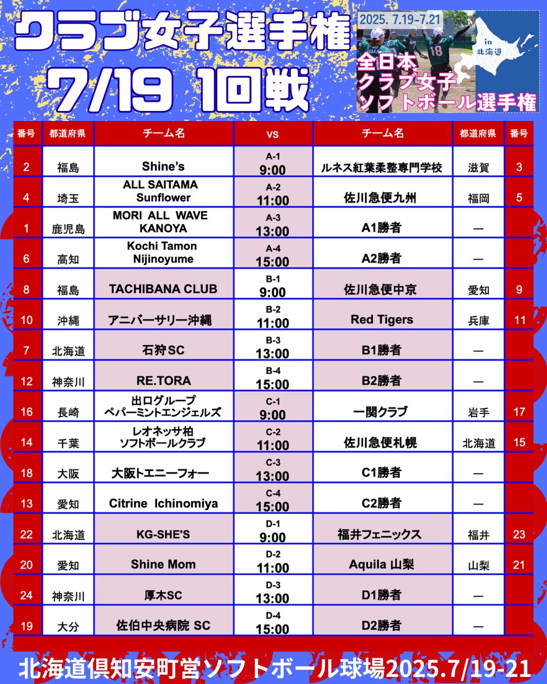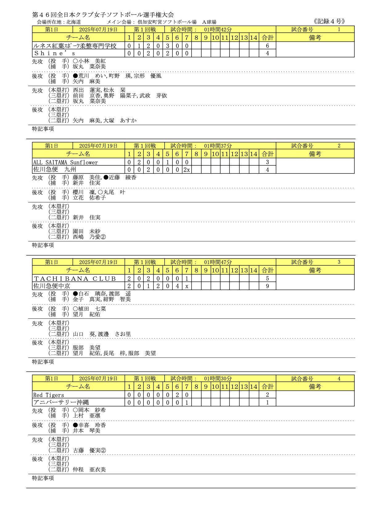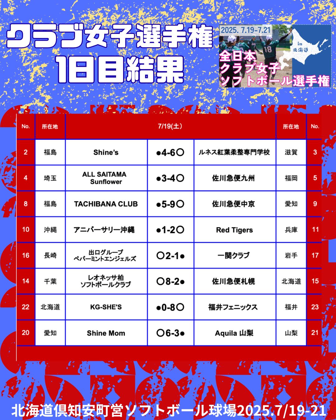 2025年7/19〜7/21まで北海道で「第46回全日本クラブ女子ソフトボール選手権大会」が開催されました。