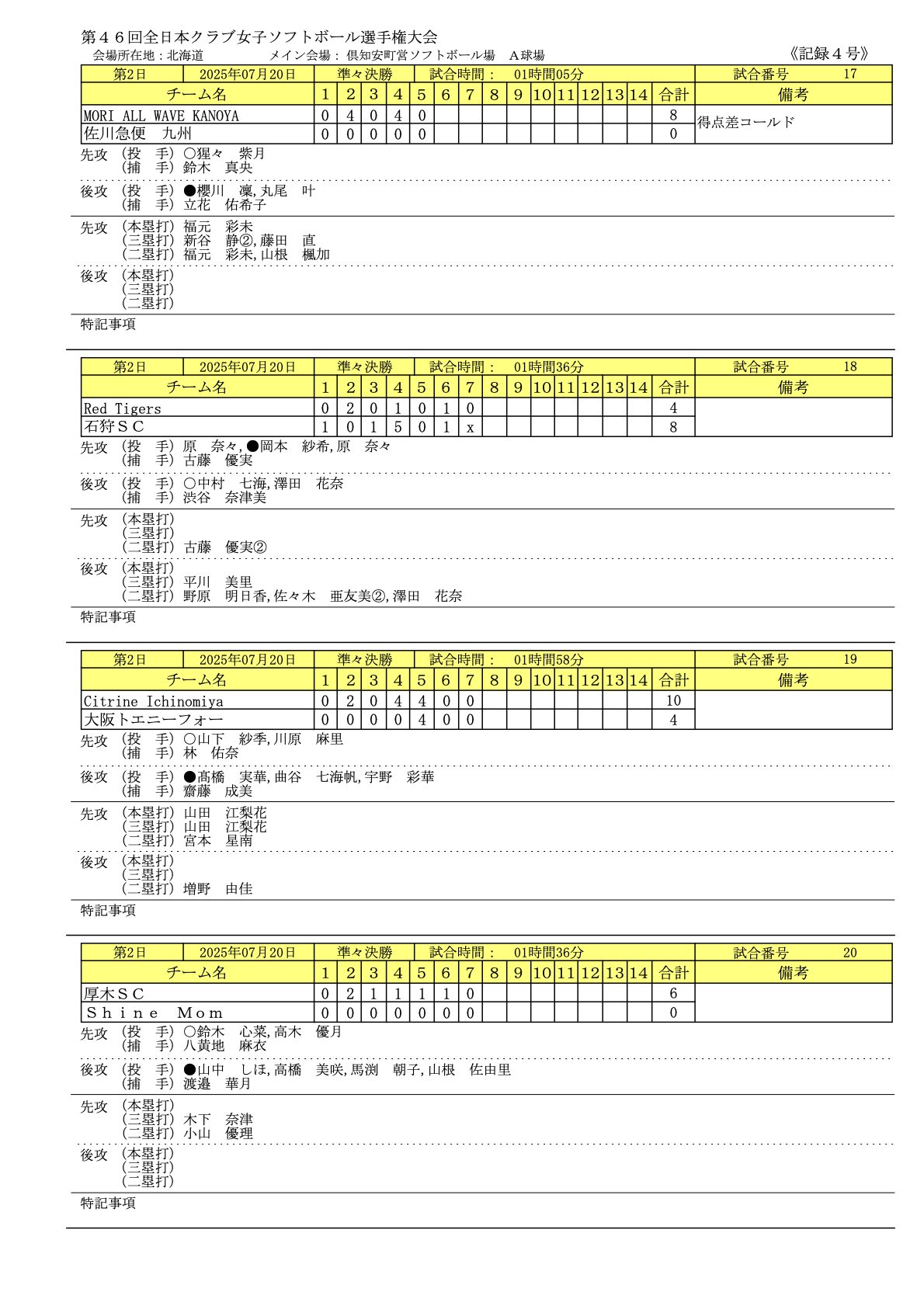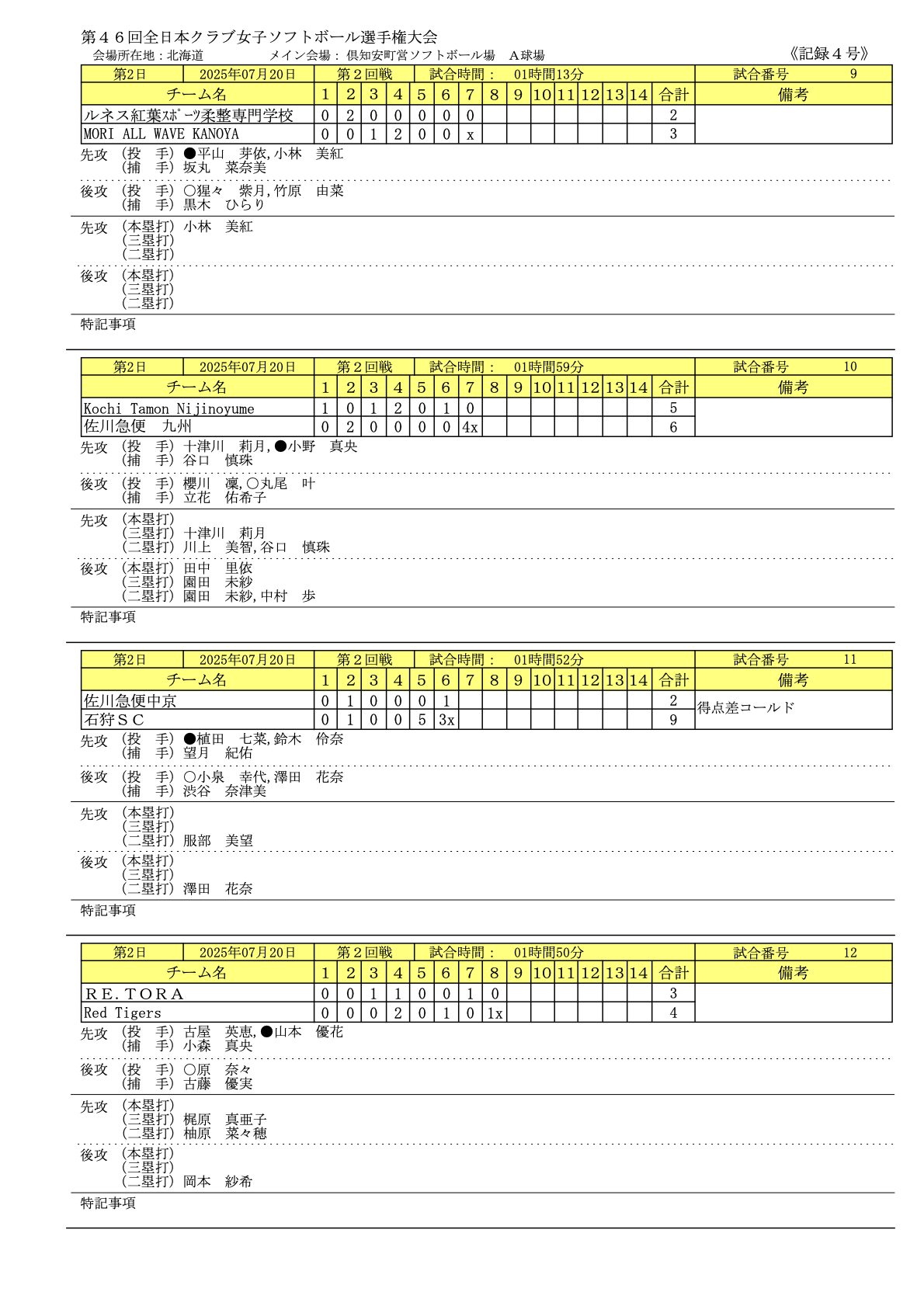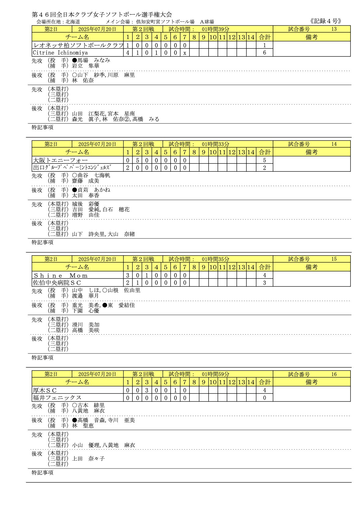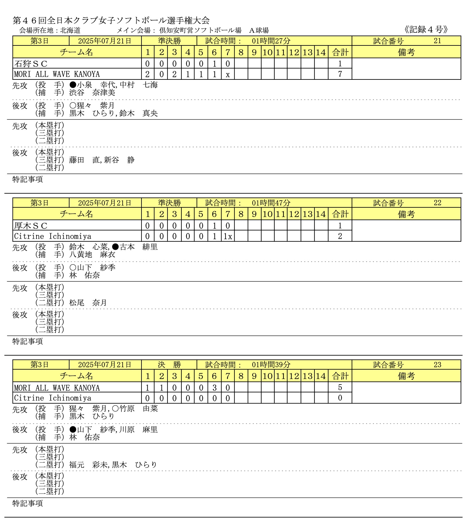 2025年7/19〜7/21まで北海道で「第46回全日本クラブ女子ソフトボール選手権大会」が開催されました。