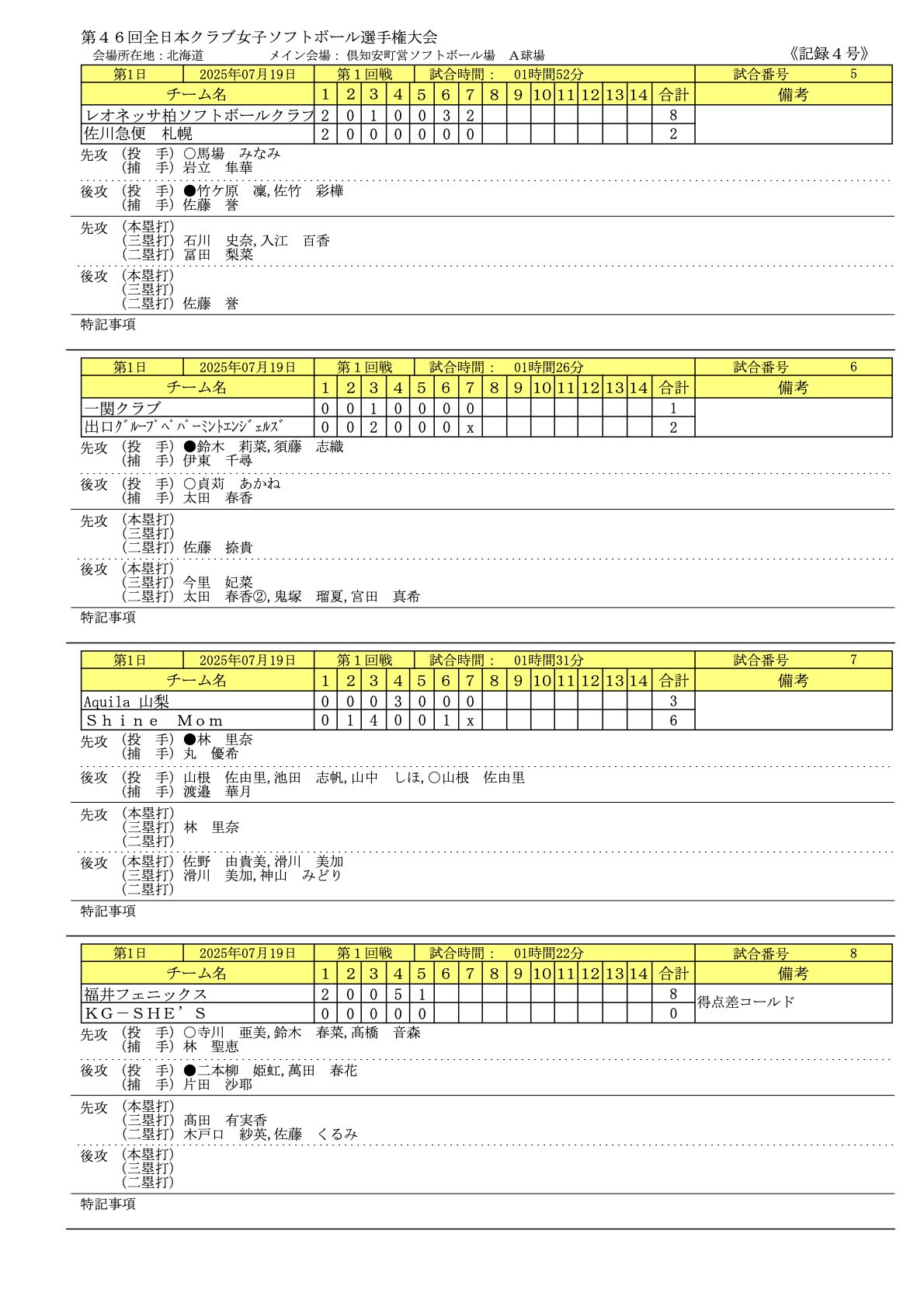 | レオネッサ柏 ソフトボールクラブ | C-2 7/19 〇8-2● | 佐川急便札幌 |