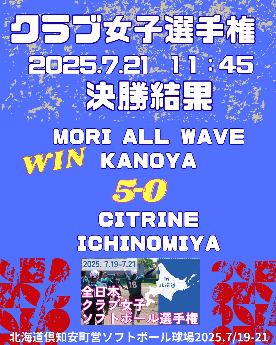 MORI4連覇‼️【クラブ女子】全日本クラブ女子ソフトボール選手権大会2025 in北海道 7/19-7/21