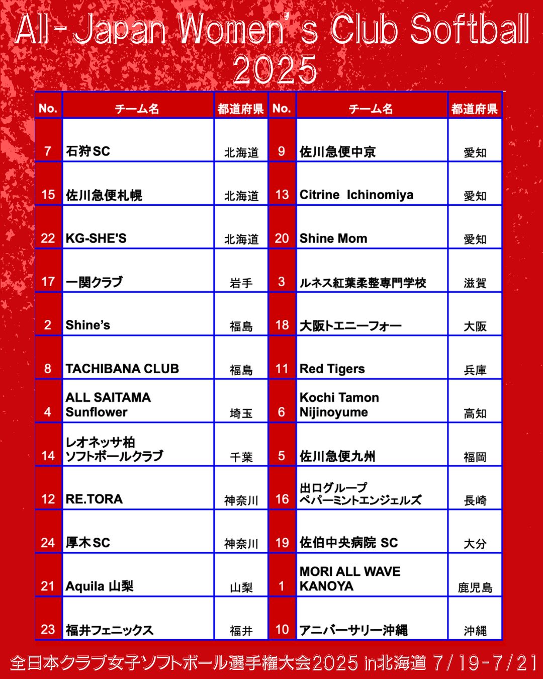 2025年7/19〜7/21まで北海道で「第46回全日本クラブ女子ソフトボール選手権大会」が開催されます。