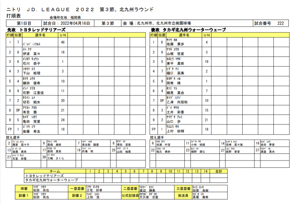 スタメン【試合結果】トヨタvsタカギ≪JDリーグ≫第3節