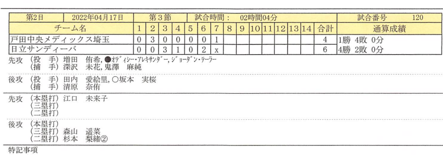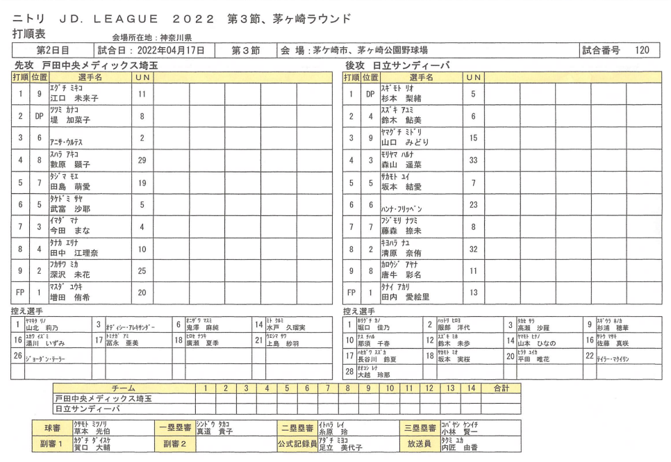 スタメン【試合結果】戸田中央vs日立≪JDリーグ≫第3節
