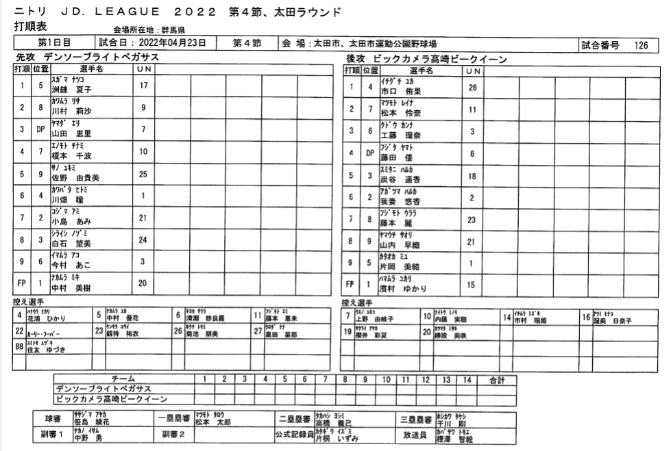 スタメン【試合結果】日立vビックカメラ高崎s≪JDリーグ≫第4節