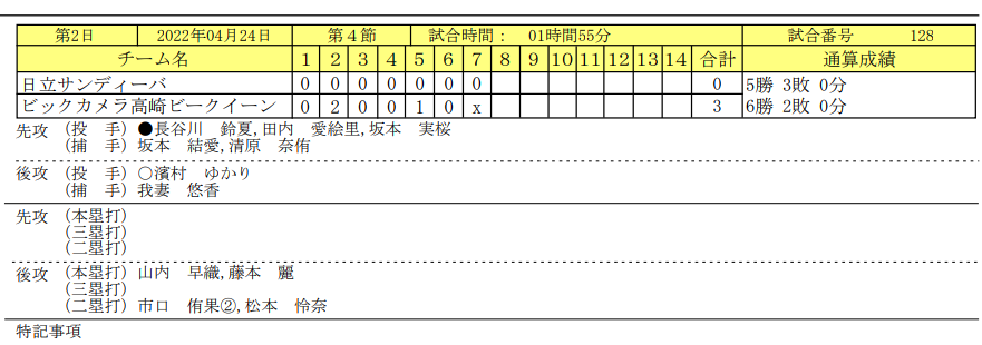 スタメン【試合結果】日立vビックカメラ高崎s≪JDリーグ≫第4節