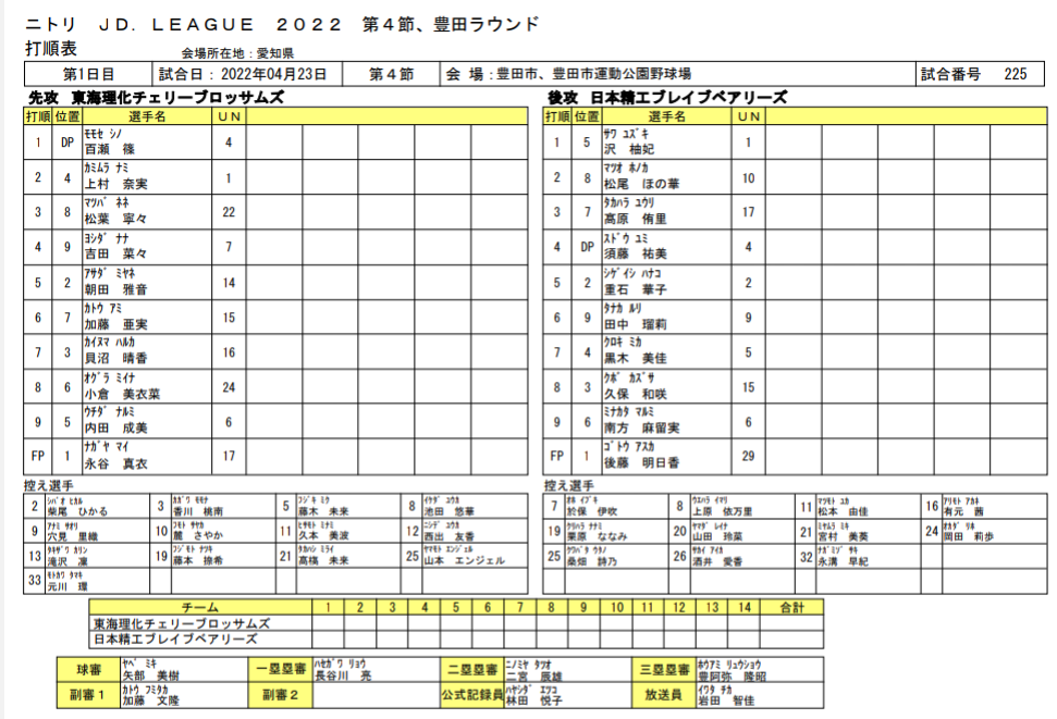 スタメン【試合結果】日立vビックカメラ高崎s≪JDリーグ≫第4節