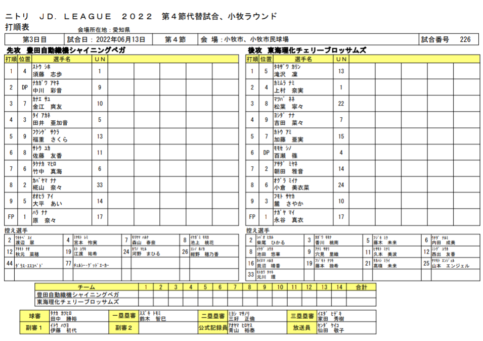 スタメン【試合結果】豊田自動織機vs東海理化≪JDリーグ≫第4節