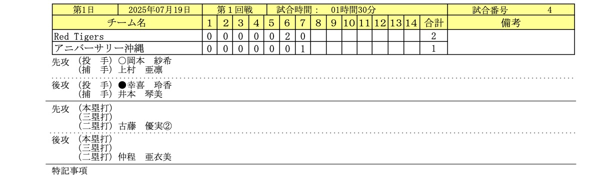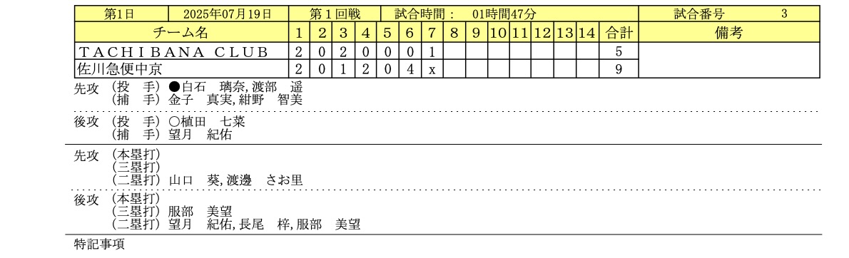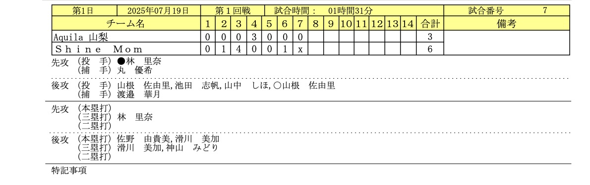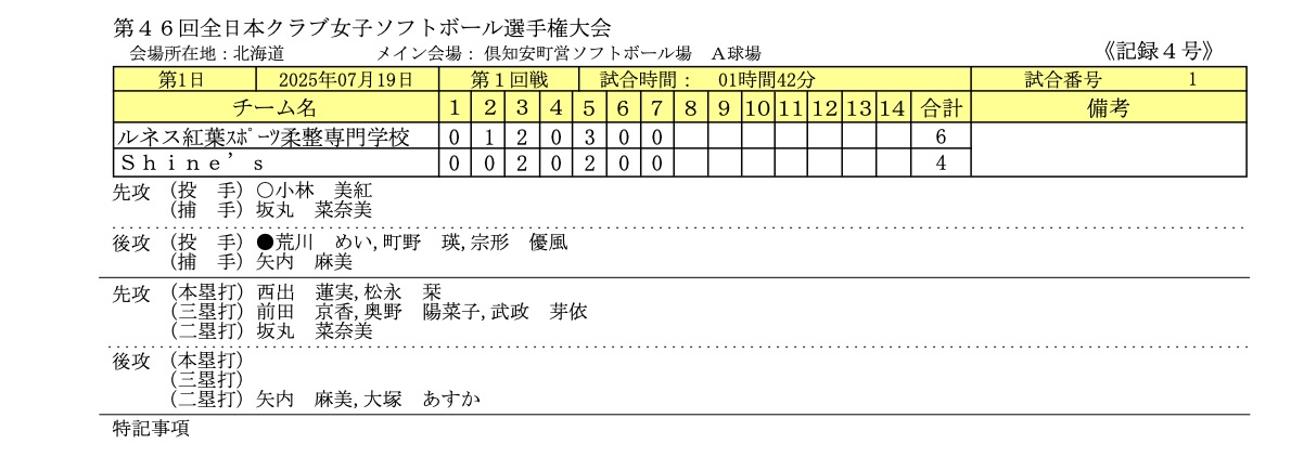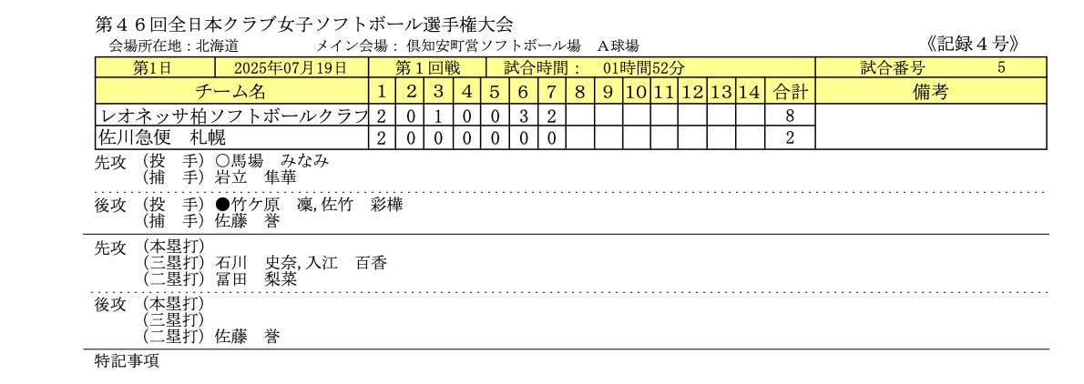 7/19〜7/21まで北海道倶知安町で開催された「全日本クラブ女子ソフトボール選手権大会」の1日目のイニングスコアとフォトギャラリーです。