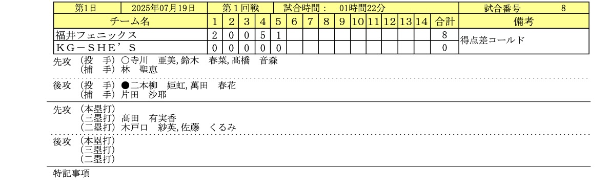 福井フェニックス 〇8-0● KG-SHE'S