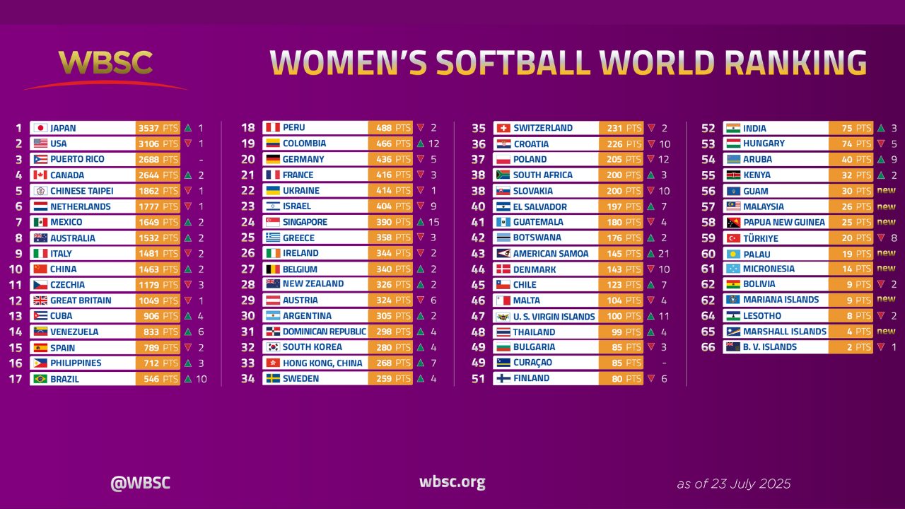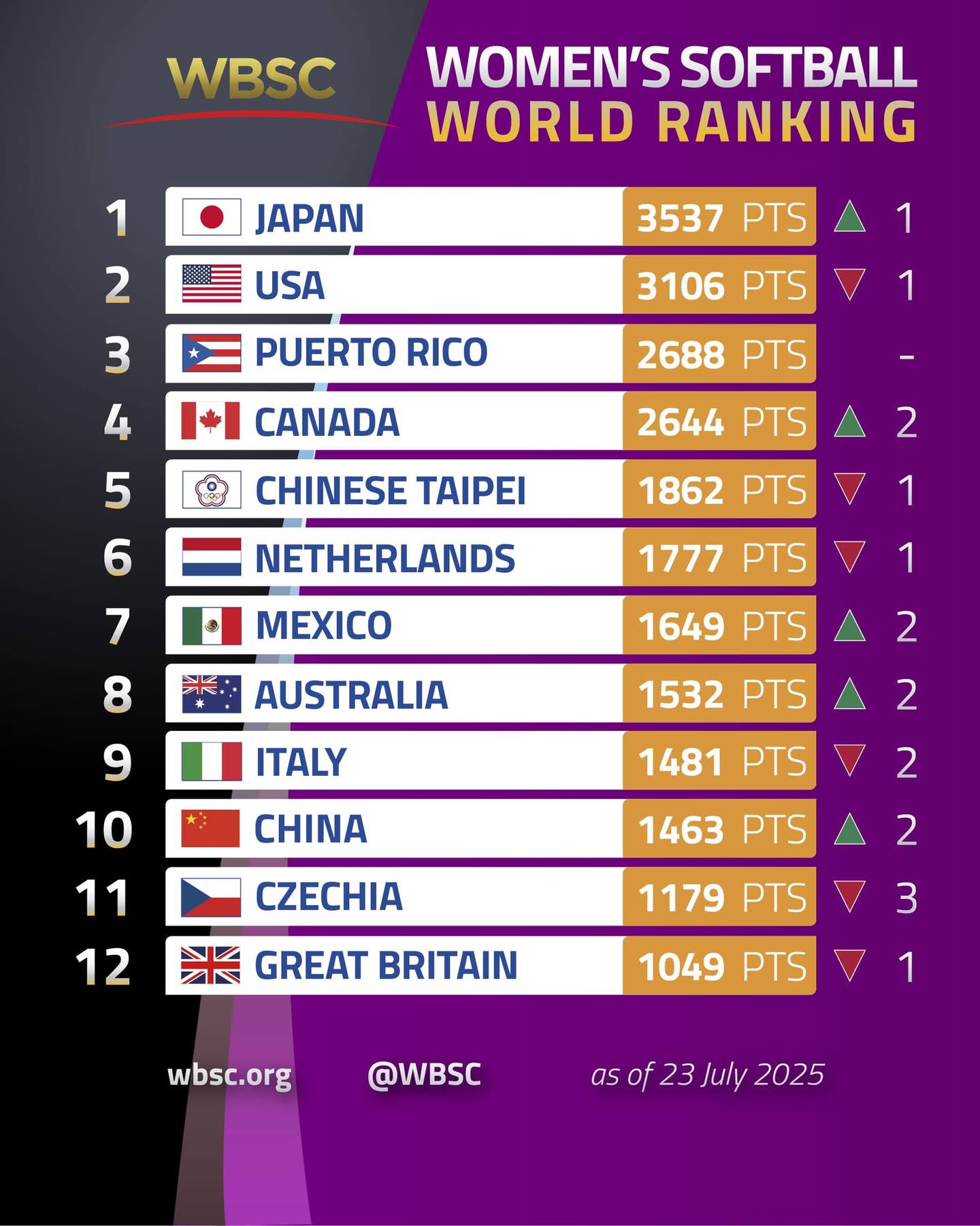 世界野球ソフトボール連盟(WBSC)は最新の世界ランキングを発表し、日本が女子・男子ソフトボール両カテゴリーで世界1位に輝きました。これにより日本は、野球・ソフトボールの主要4カテゴリーすべてで世界トップの座を占める快挙を達成しました。
