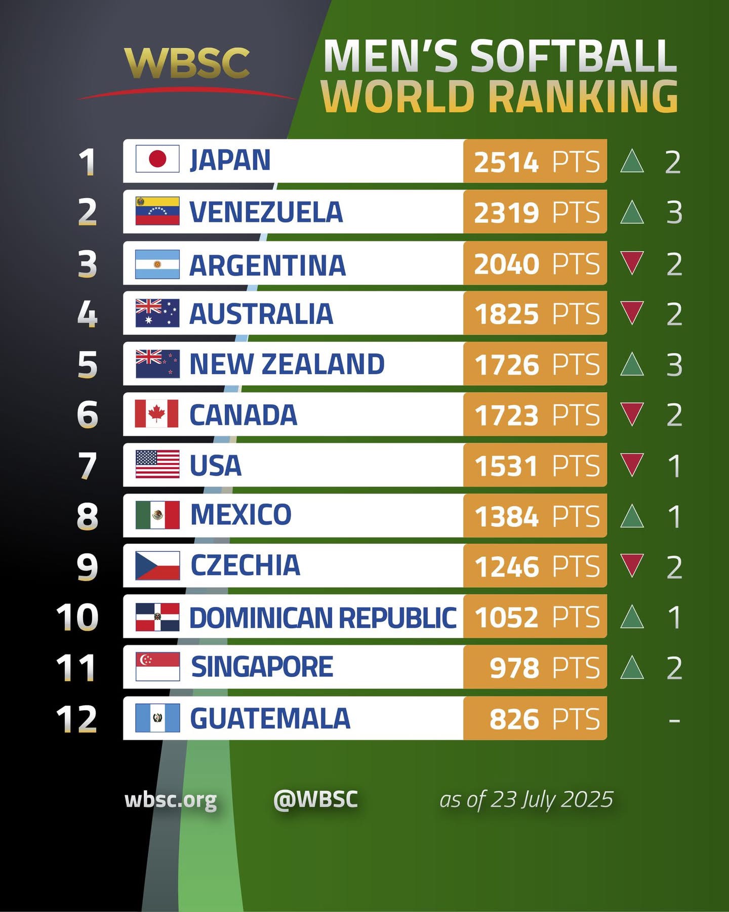 男子ソフトボール世界ランキングでは、日本が「WBSC男子ソフトボールワールドカップ2025」で4位に入り、2ランクアップで世界1位を奪取。2021年以来の首位返り咲きとなりました。