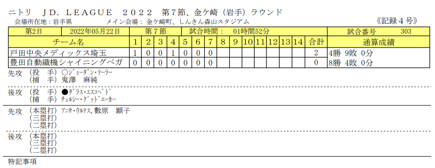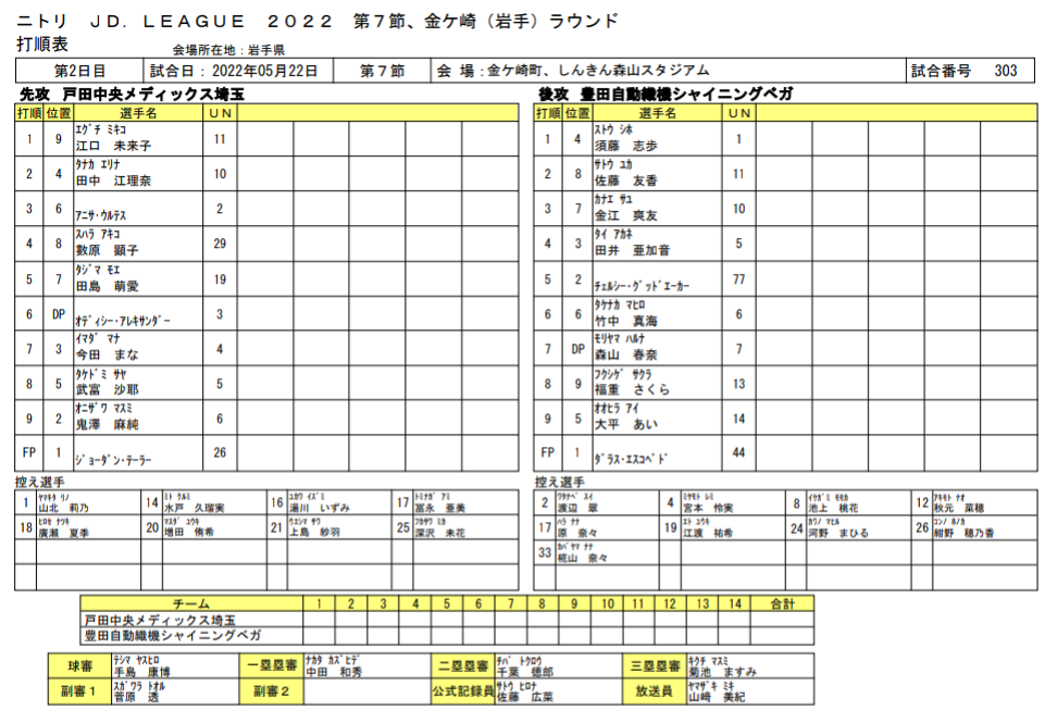 スタメン【試合結果】戸田中央vs豊田自動織機≪JDリーグ≫第7節