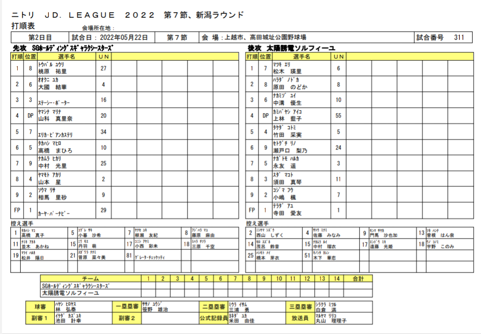 スタメン【試合結果】太陽誘電vsシオノギ≪JDリーグ≫第8節