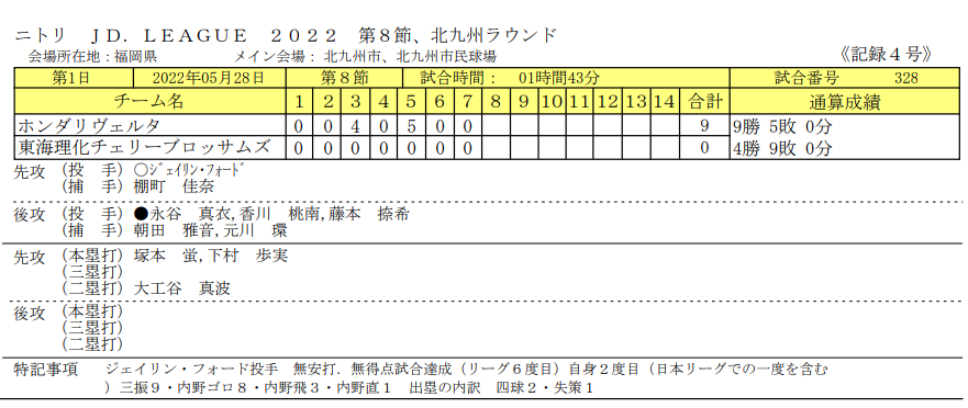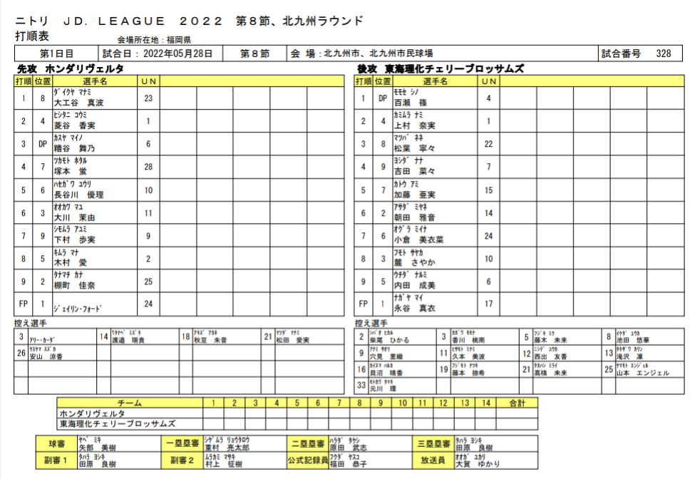 スタメン【試合結果】日立vsタカギ北九州≪JDリーグ≫第8節