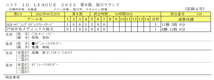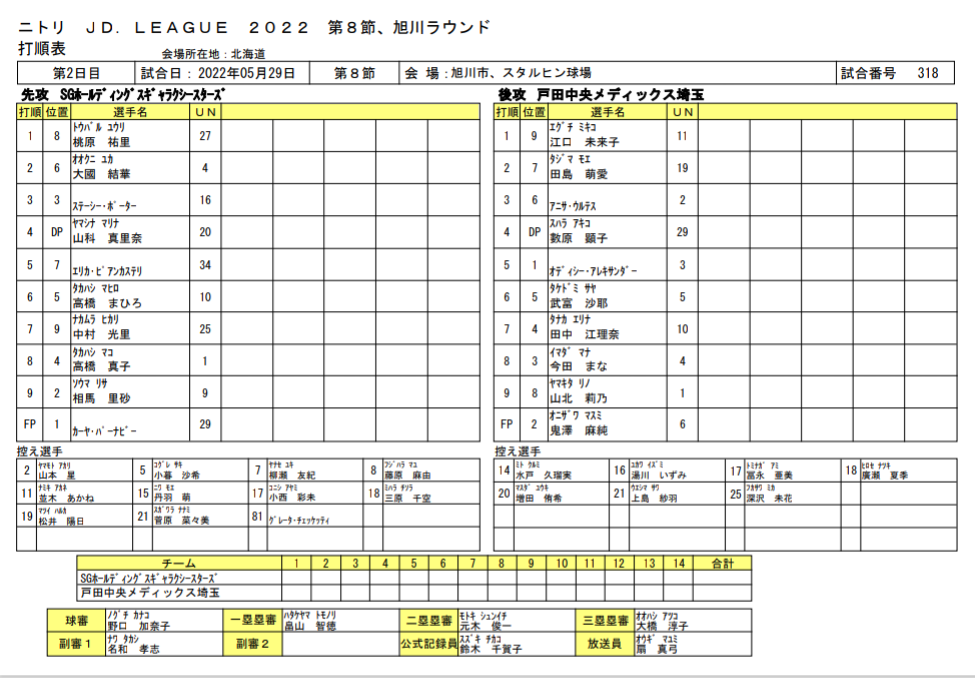 スタメン【試合結果】SGホールディングスvs戸田中央≪JDリーグ≫第8節