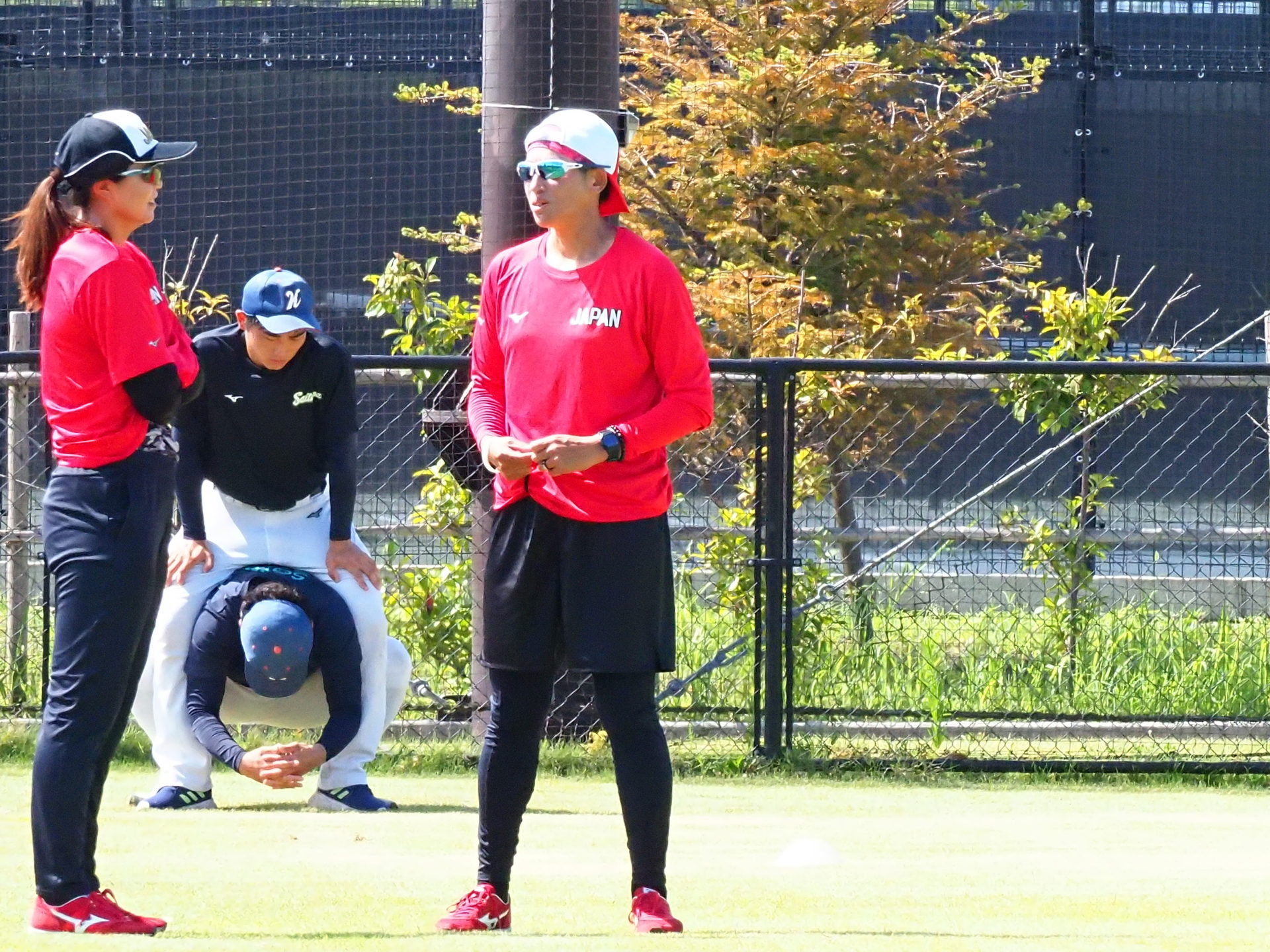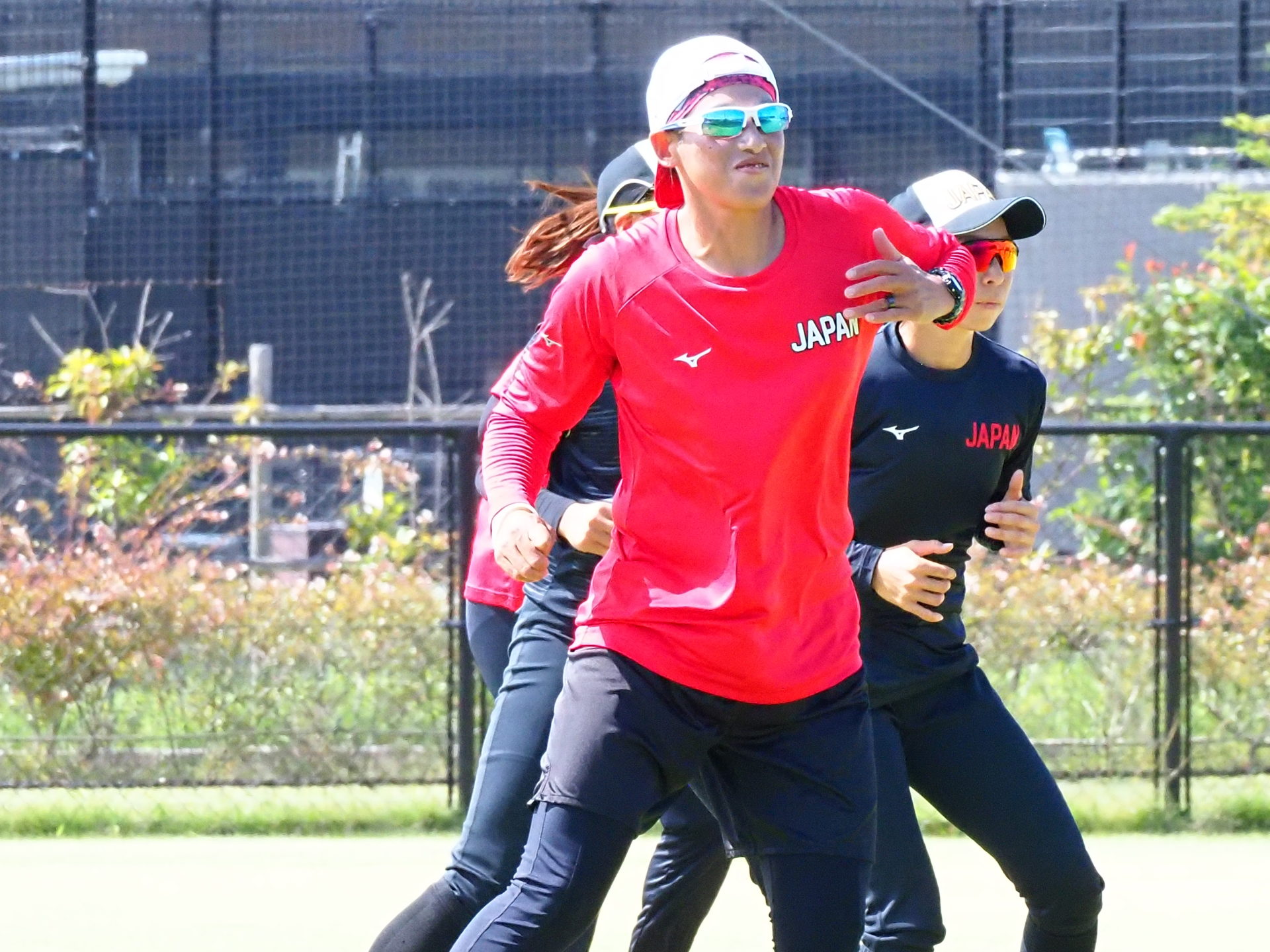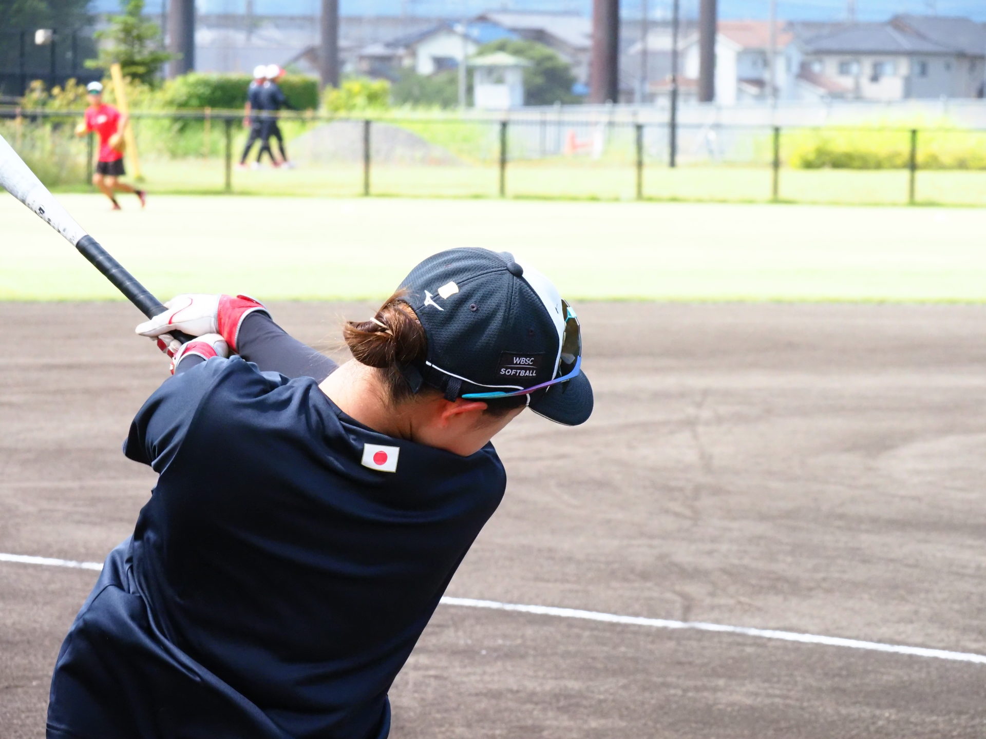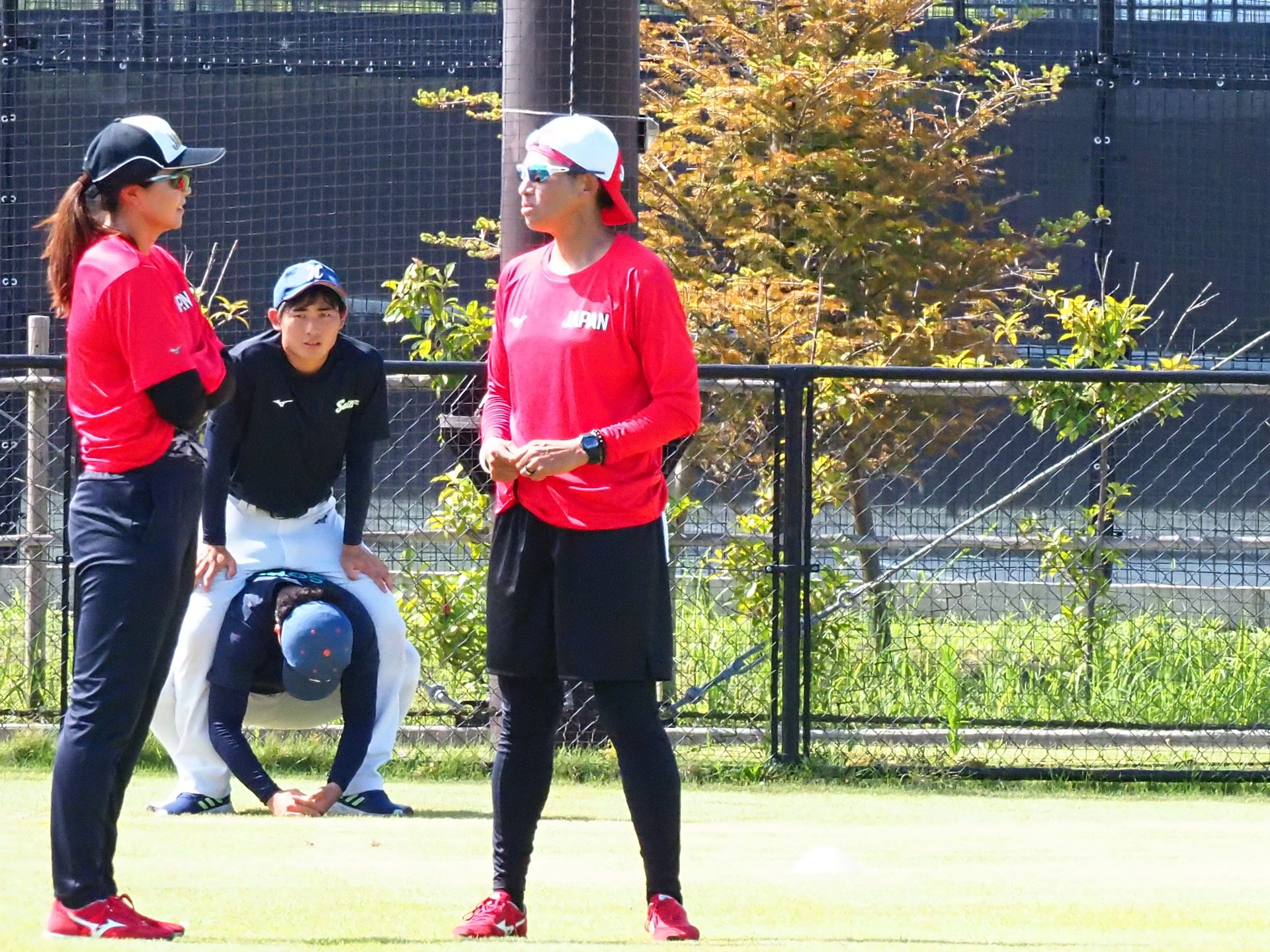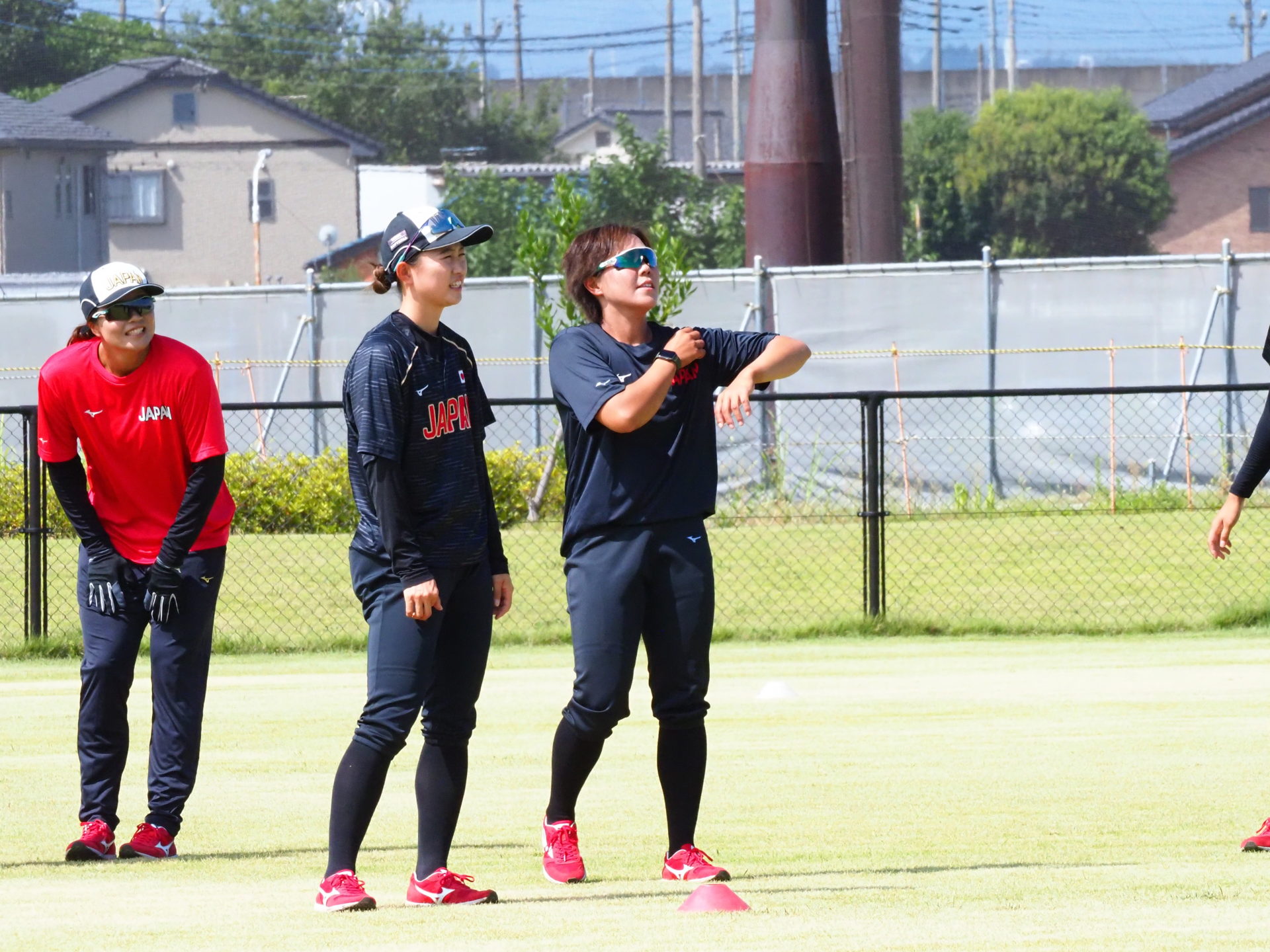 8/1にメディア向け公開練習が行われました。今回は、宇津木スタジアムでビックカメラとSHIONOGIの練習試合が行われていたため、第二グランドで練習するJAPANの取材となりました。スタジアムと違い、選手の表情もよくわかり貴重な機会となりました。