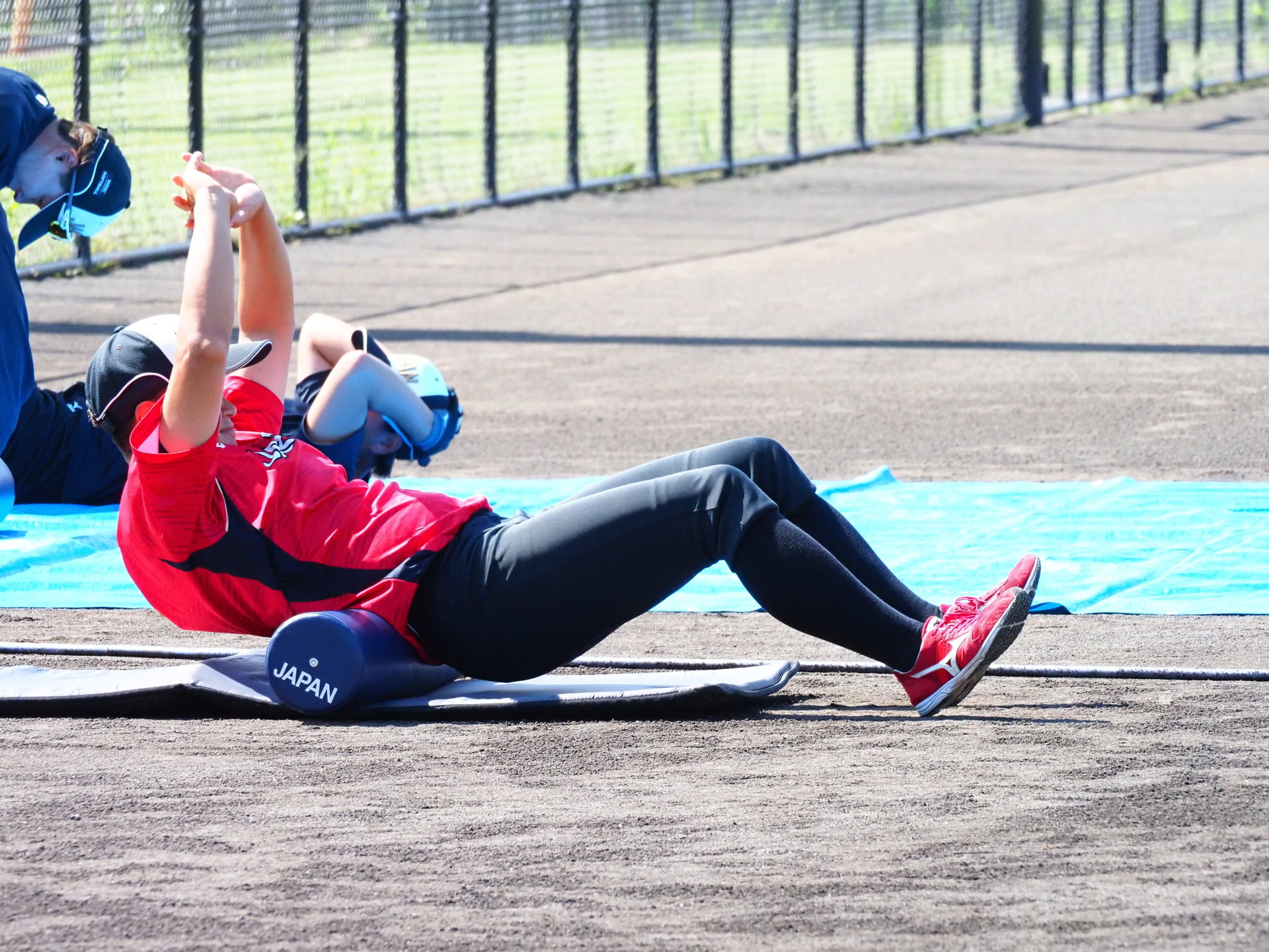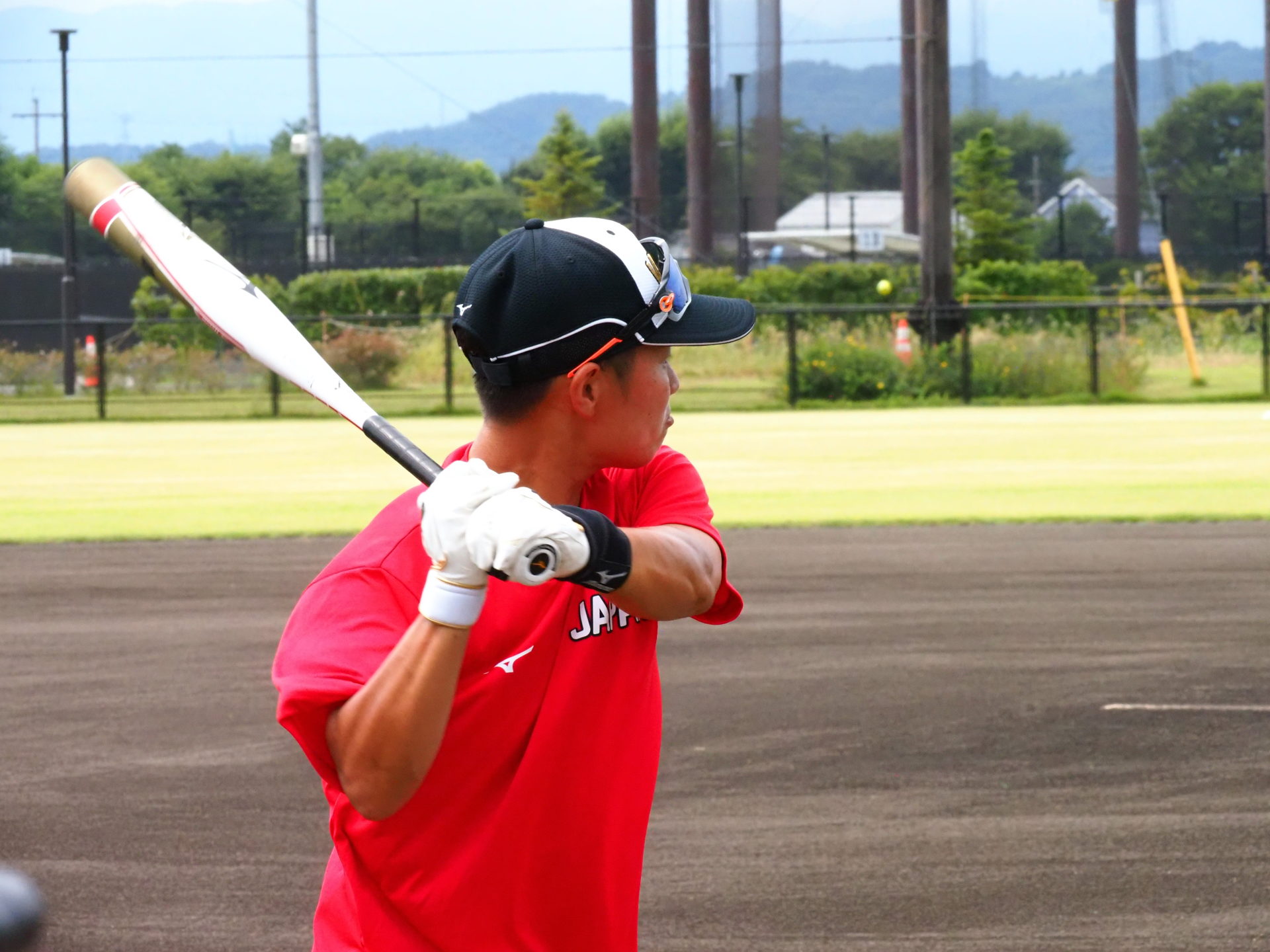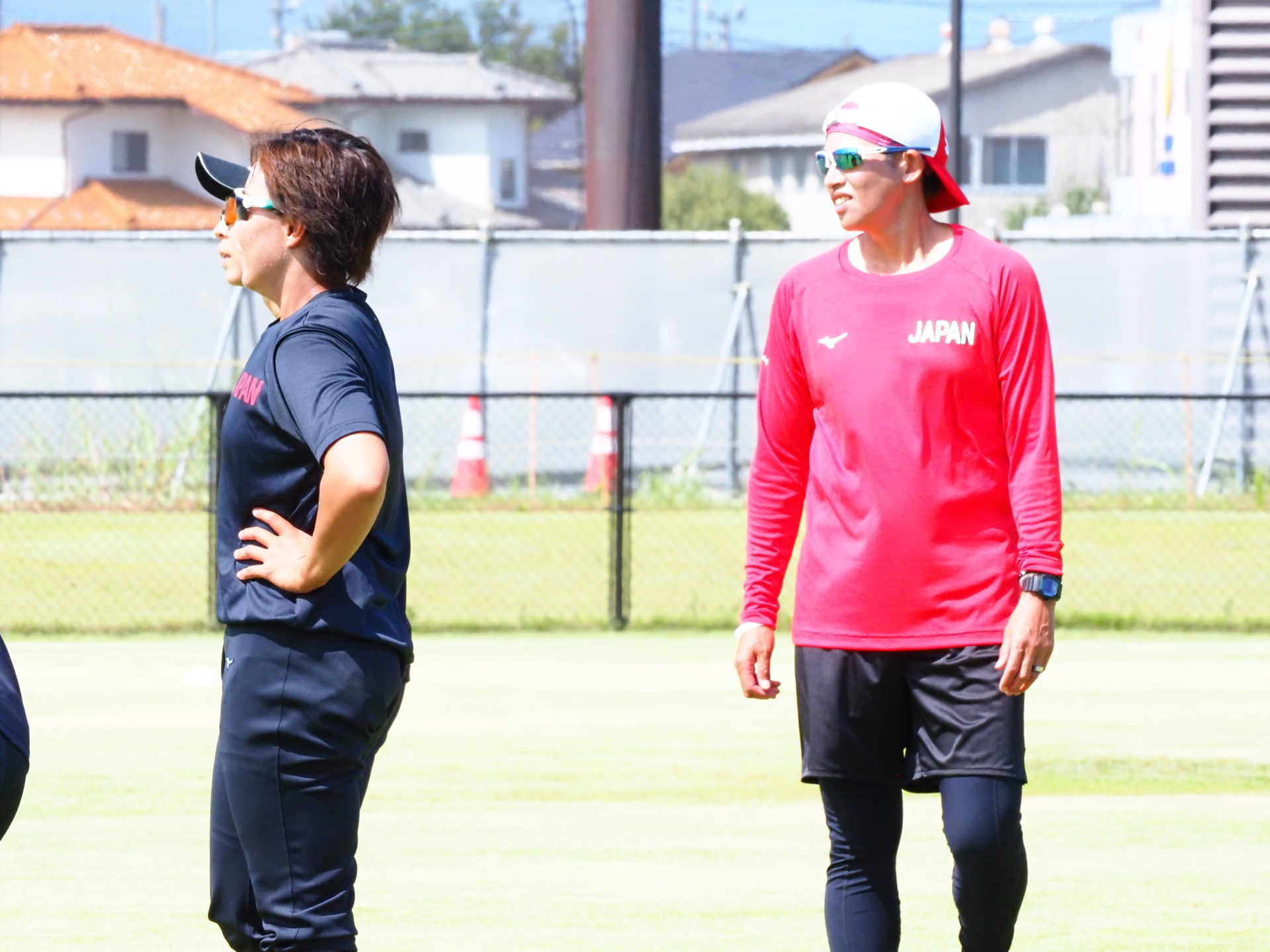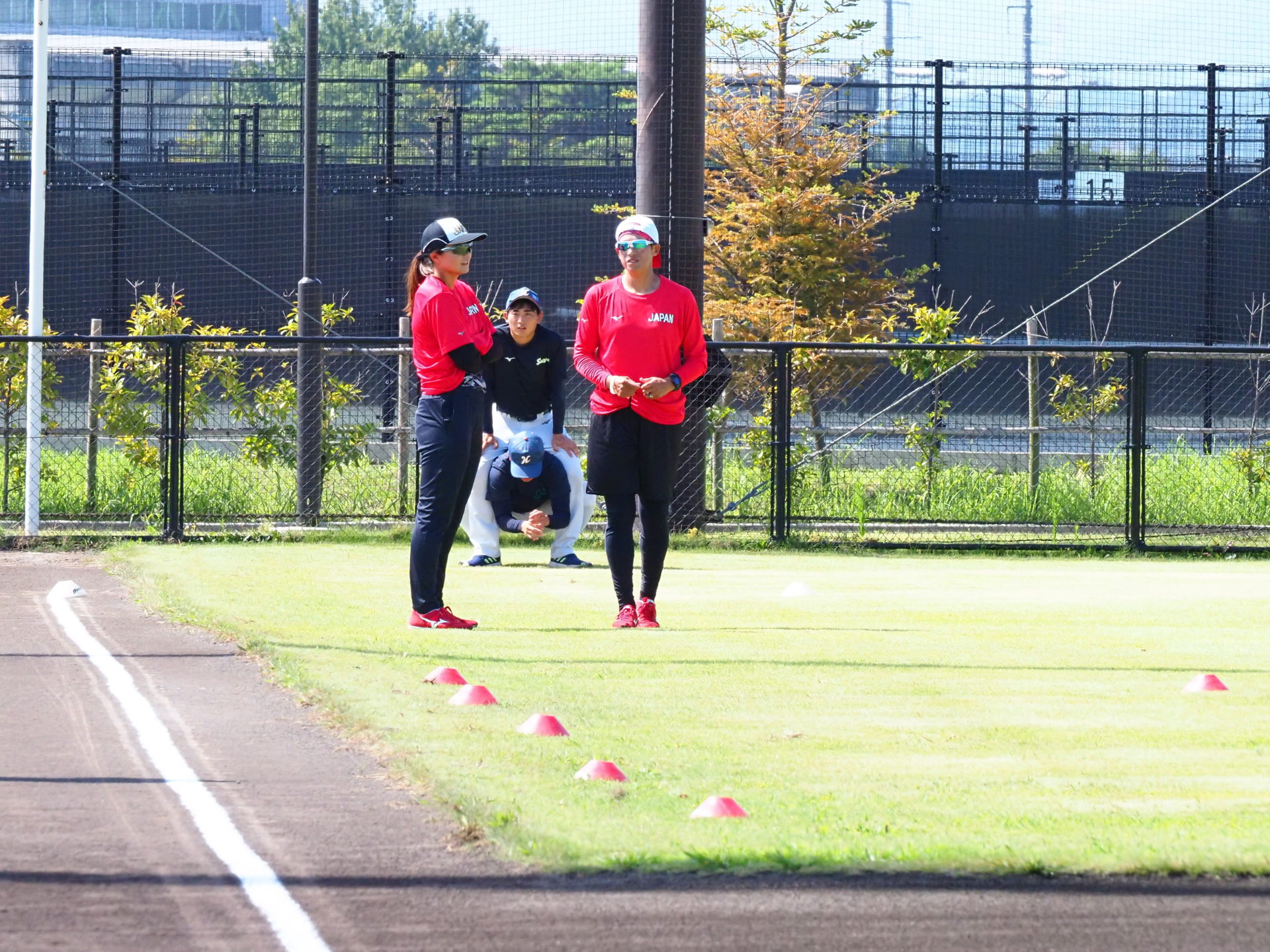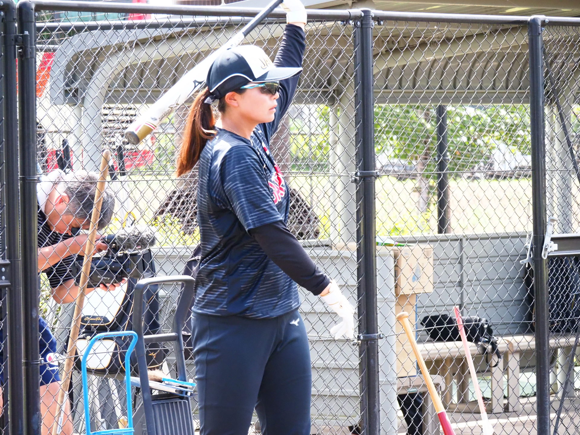 8/1にメディア向け公開練習が行われました。今回は、宇津木スタジアムでビックカメラとSHIONOGIの練習試合が行われていたため、第二グランドで練習するJAPANの取材となりました。スタジアムと違い、選手の表情もよくわかり貴重な機会となりました。