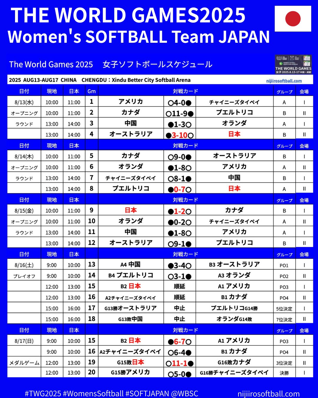 会場は男子と同じ「Xindu Better City ソフトボールアリーナ」で、5日間の日程で行われます。