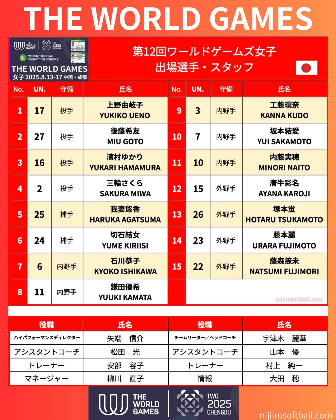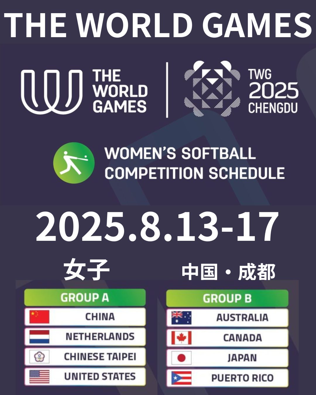 【📍大会情報】女子ワールドゲームズ2025 in中国成都 女子ソフトボール