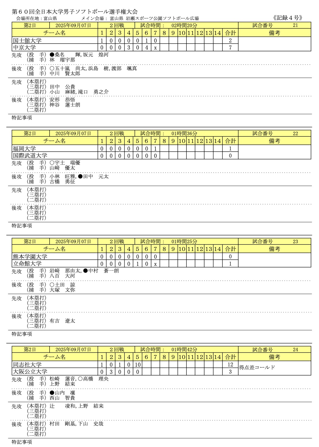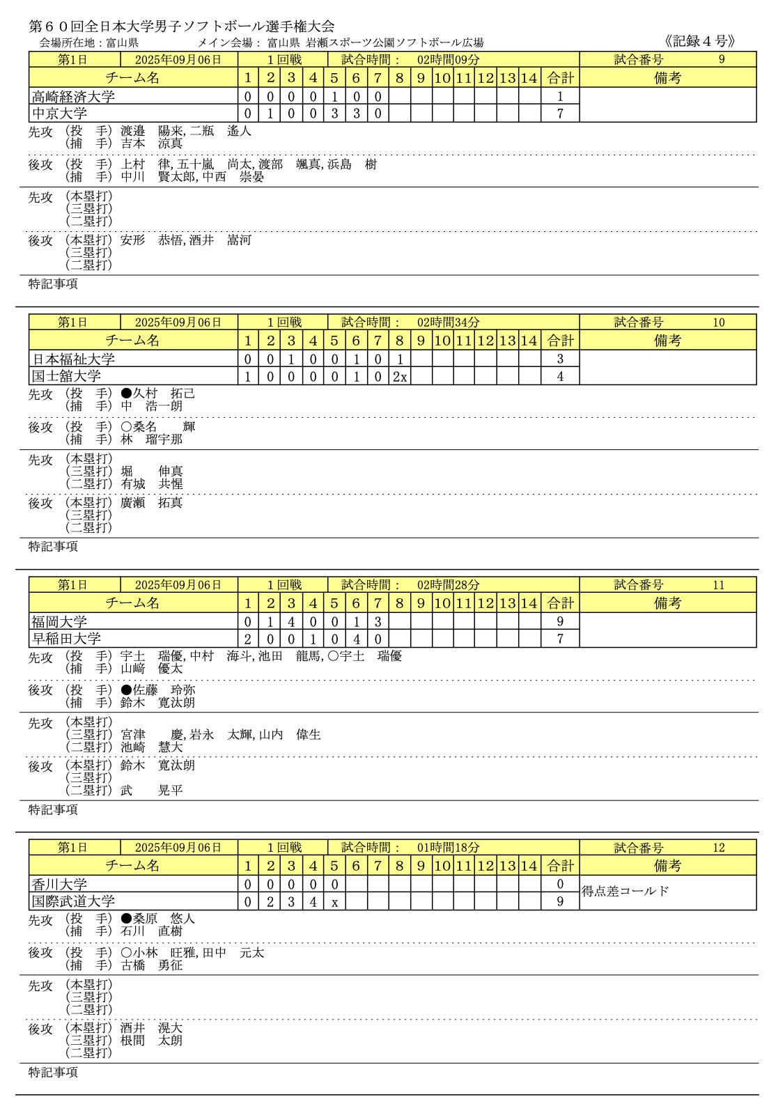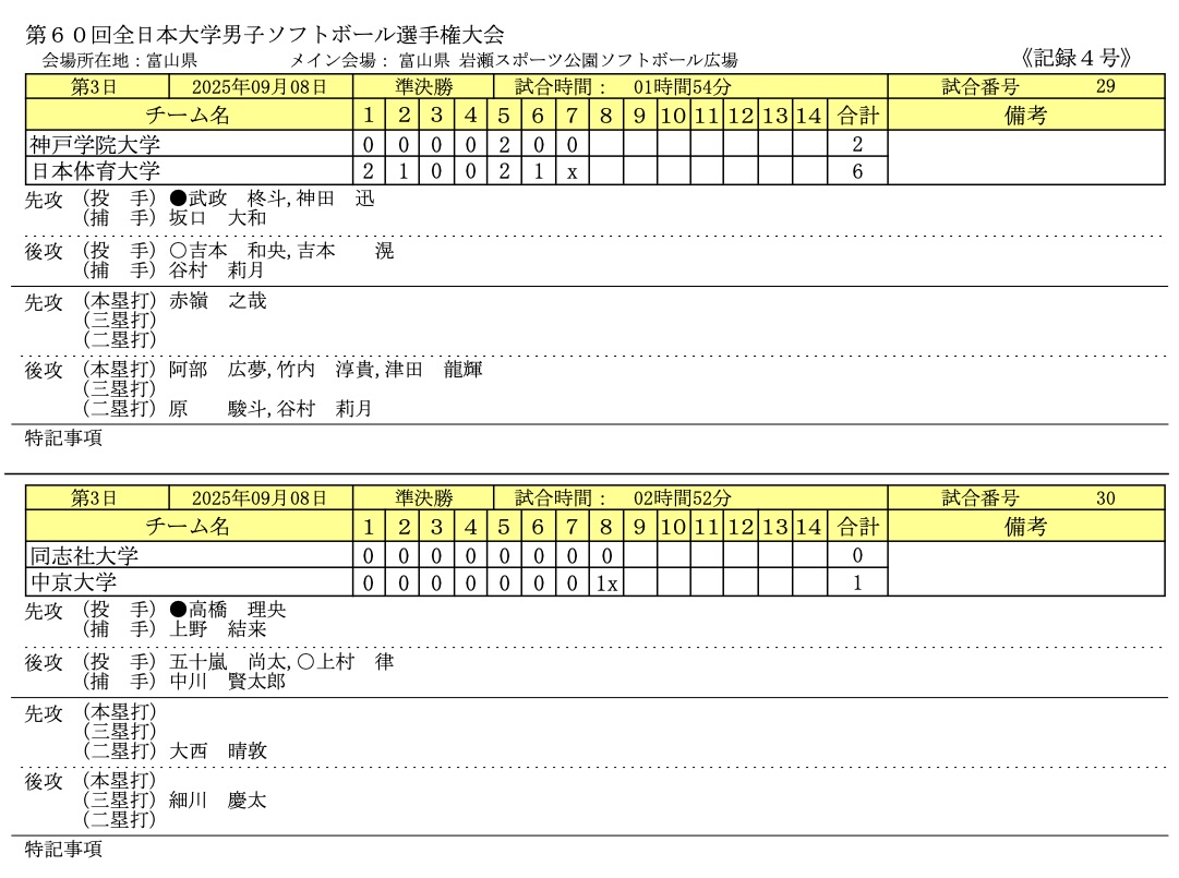 2025年9/6〜9/8まで富山県富山市で「第60回全日本大学男子ソフトボール選手権大会」が開催されました。