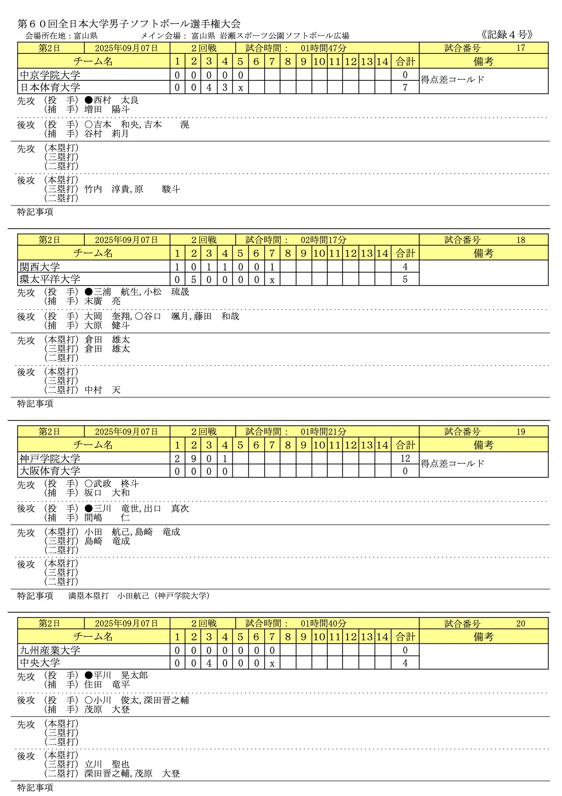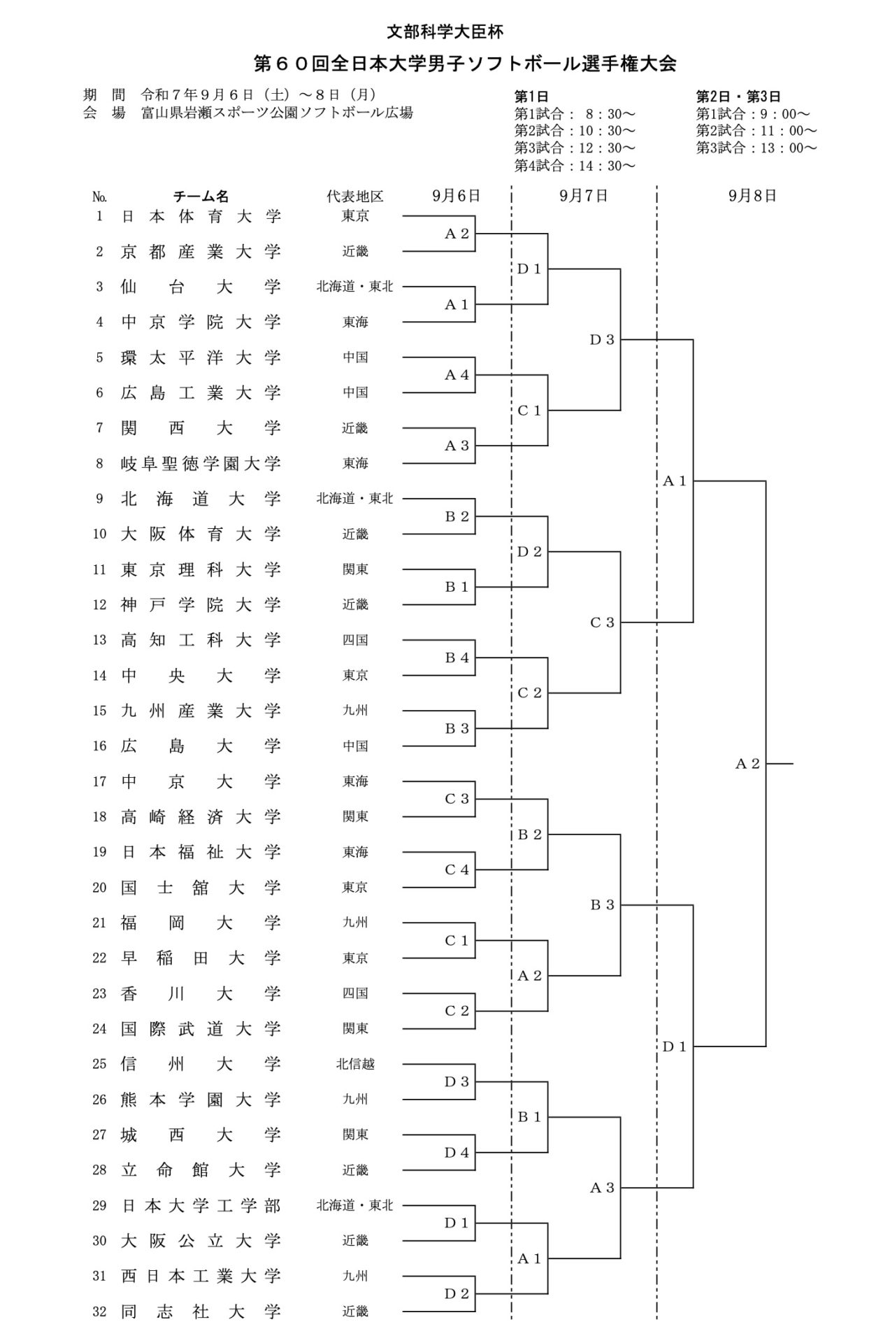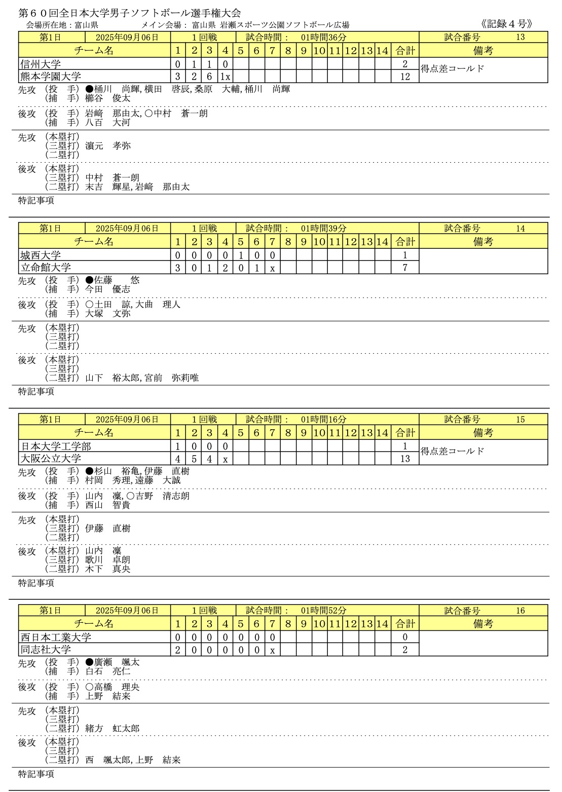 2025年9/6〜9/8まで富山県富山市で「第60回全日本大学男子ソフトボール選手権大会」が開催されました。