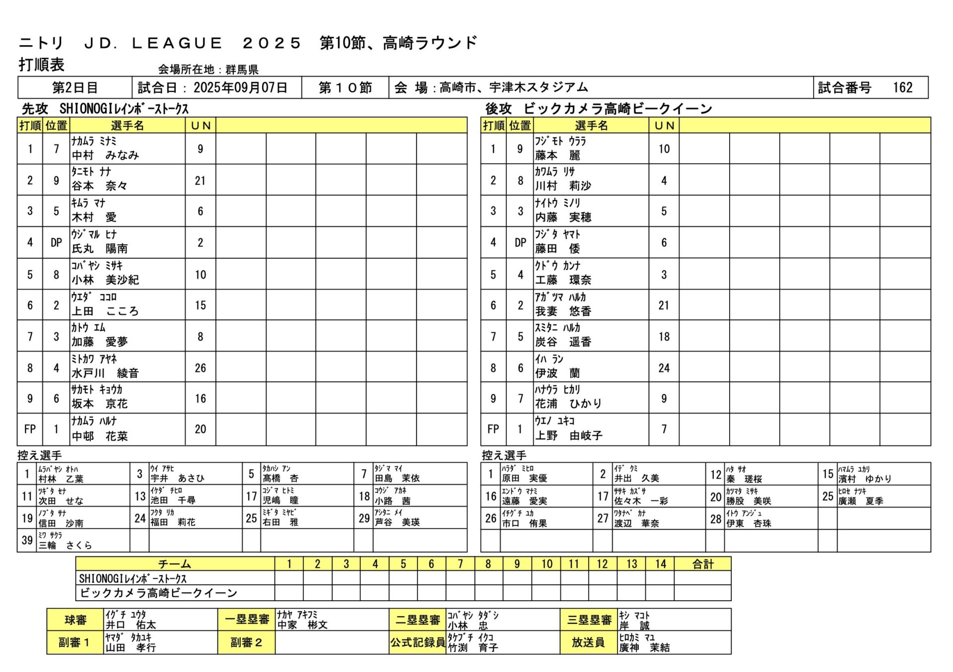 ビックカメラ高崎 2-1 SHIONOGI JDL第10節高崎ラウンド 2025.9.7 女子ソフトボール試合結果