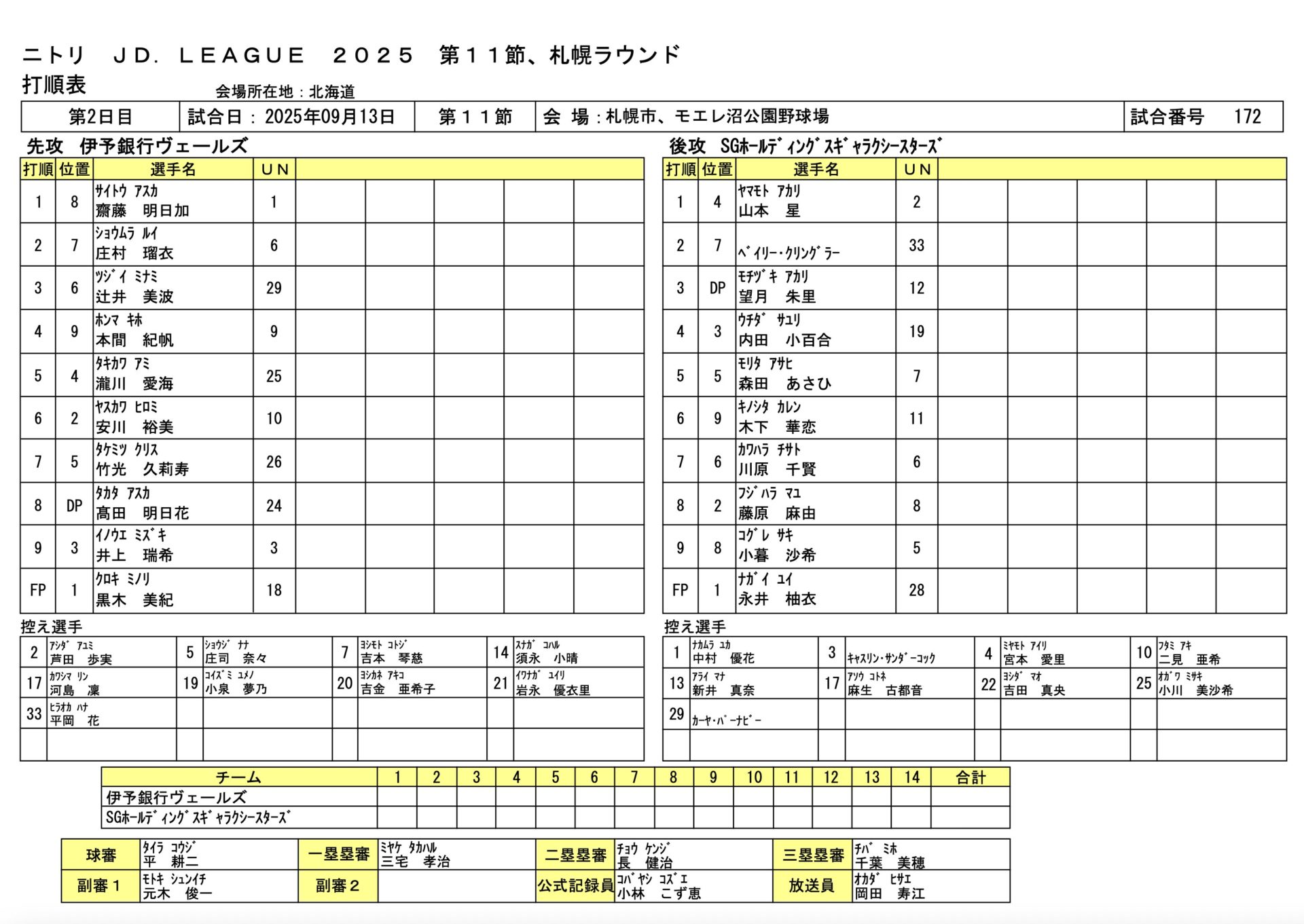SGH 5-0 伊予銀行 JDL第11節札幌ラウンド 2025.9.13 女子ソフトボール