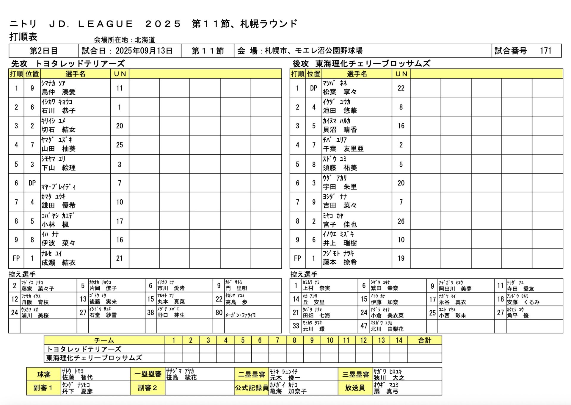 トヨタ 6-2 東海理化 JDL第11節札幌ラウンド 2025.9.13 女子ソフトボール